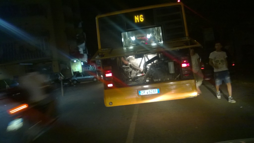 Non è la prima volta che il servizio su gomma subisce ritardi o cancellazioni di corse a causa del cattivo stato degli automezzi. L’atavica carenza di una regolare manutenzione comporta il duplice effetto di far diminuire vertiginosamente il numero degli autobus in circolazione e di portare a inevitabili guasti su quelli ancora funzionanti. Nel caso dell’N6 si trattava di uno dei bus di ultima generazione, sintomo evidente di come venga mal gestito il già scarso parco automezzi a disposizione degli autisti che si trovano nella necessità di effettuare il servizio su mezzi pericolosi.