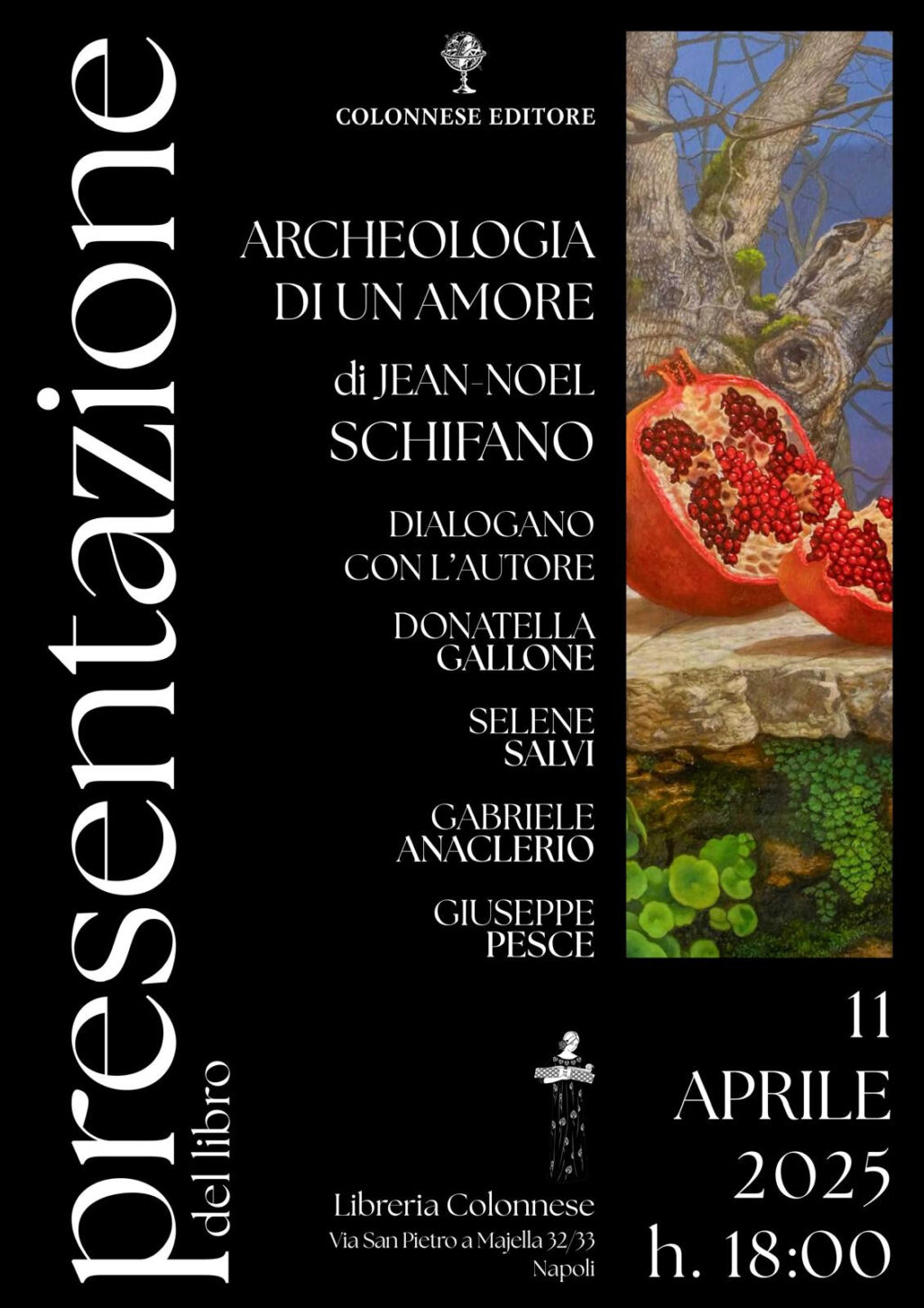 Con Archeologia di un amore continua presso l’editore Colonnese la pubblicazione delle opere di Jean-Noël Schifano, di padre siciliano e madre lionese, direttore l’Institut Français di Napoli (1992-98), di cui è cittadino onorario per i meriti culturali. Editor e curatore presso Gallimard, critico per la Nouvelle Revue Française e il quotidiano Le Monde, Schifano ha tradotto in Francia grandi autori italiani, tra cui Umberto Eco (a partire da Il nome della rosa), Leonardo Sciascia, Alberto Savinio, Italo Svevo, Elsa Morante, Anna Maria Ortese, Elena Ferrante. Colonnese ha pubblicato la nuova traduzione del suo classico Cronache napoletane e le prime edizioni italiane dei romanzi Il gallo di Renato Caccioppoli (con testo napoletano a fronte), Anna Amorosi, Amara, Gli appuntamenti di Fausta, il saggio romanzato Il vento nero non vede dove va, e il racconto Il ramo d’oro. | | |