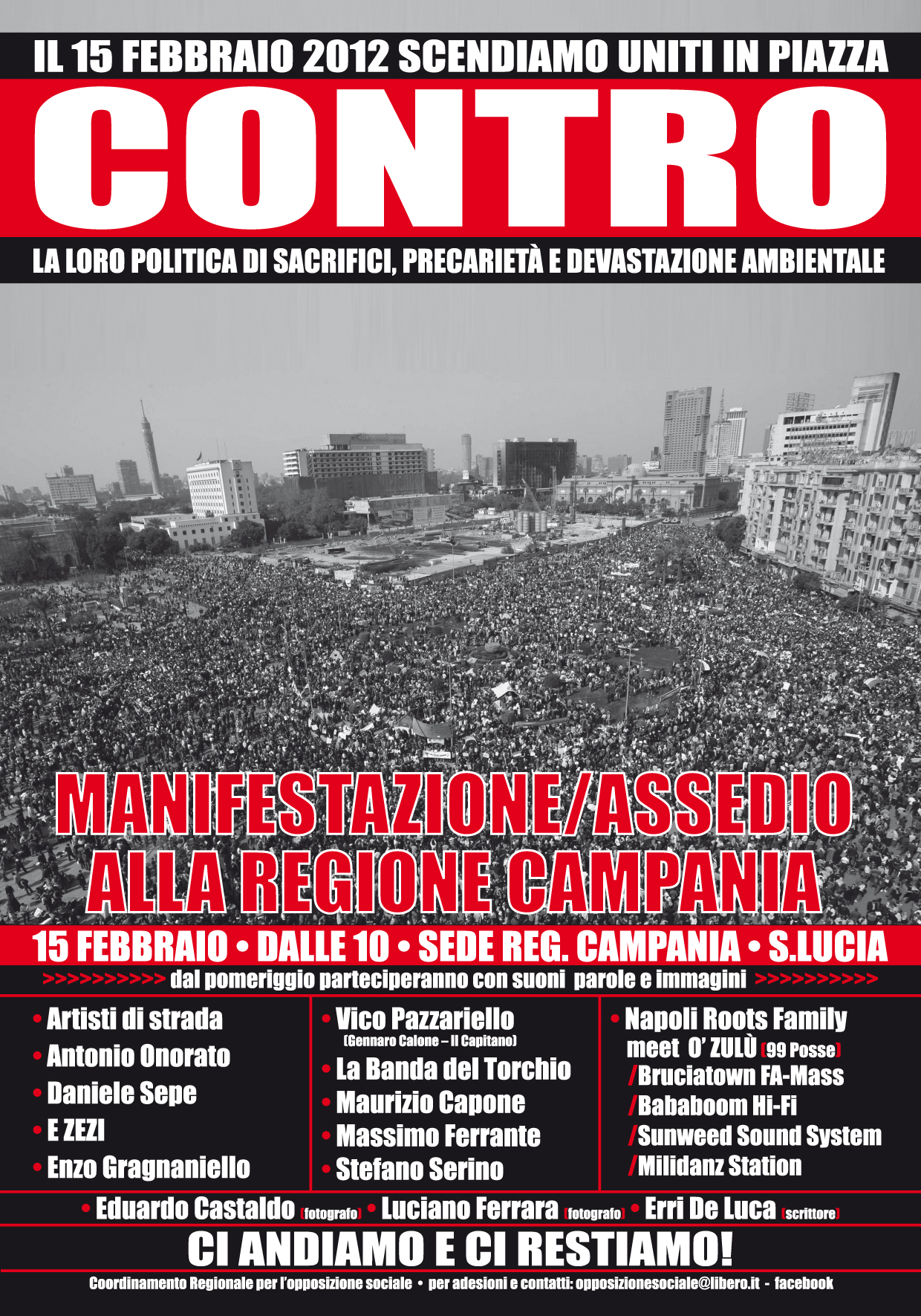 Articoli Assedio alla regione Campania: immagini in esclusivaRedazione web-Feb 15, 2012 11:49 Manifestazione fuori la Regione Campania contro ogni dittatura politica