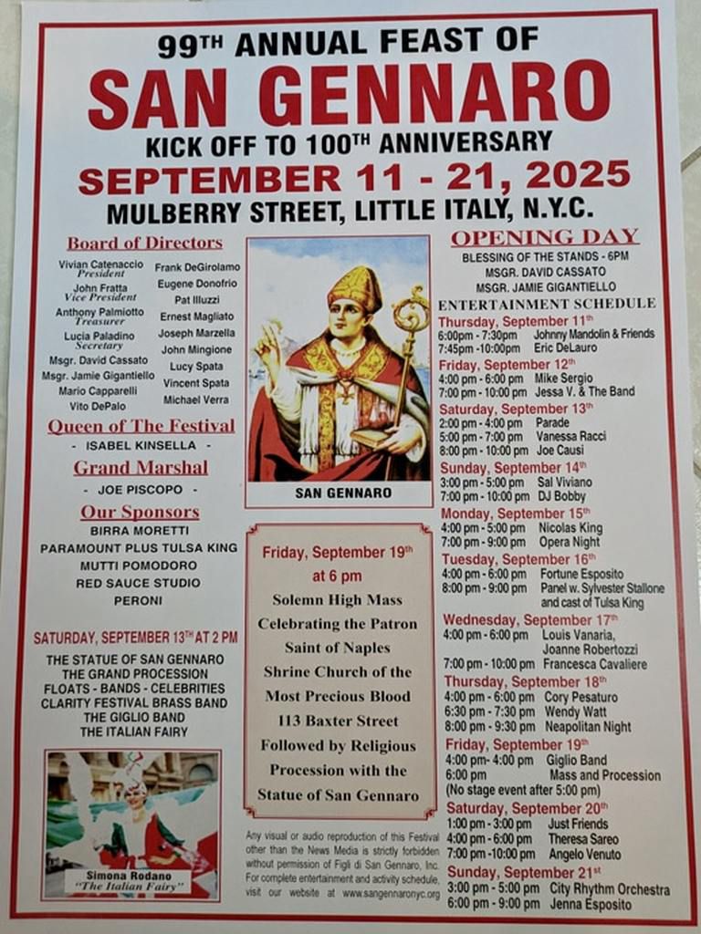 Da domani e per 11 giorni a New York, segnatamente a Little Italy, si festeggia…