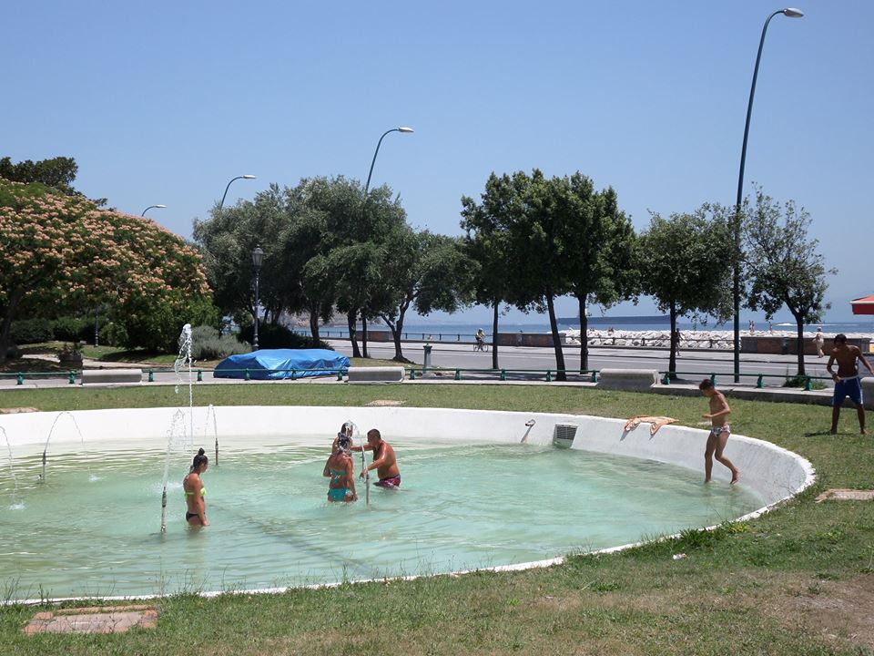 Bagno nella fontana per contrastare il caldo, rotonda Diaz presa d’assalto (FOTO)