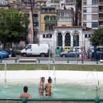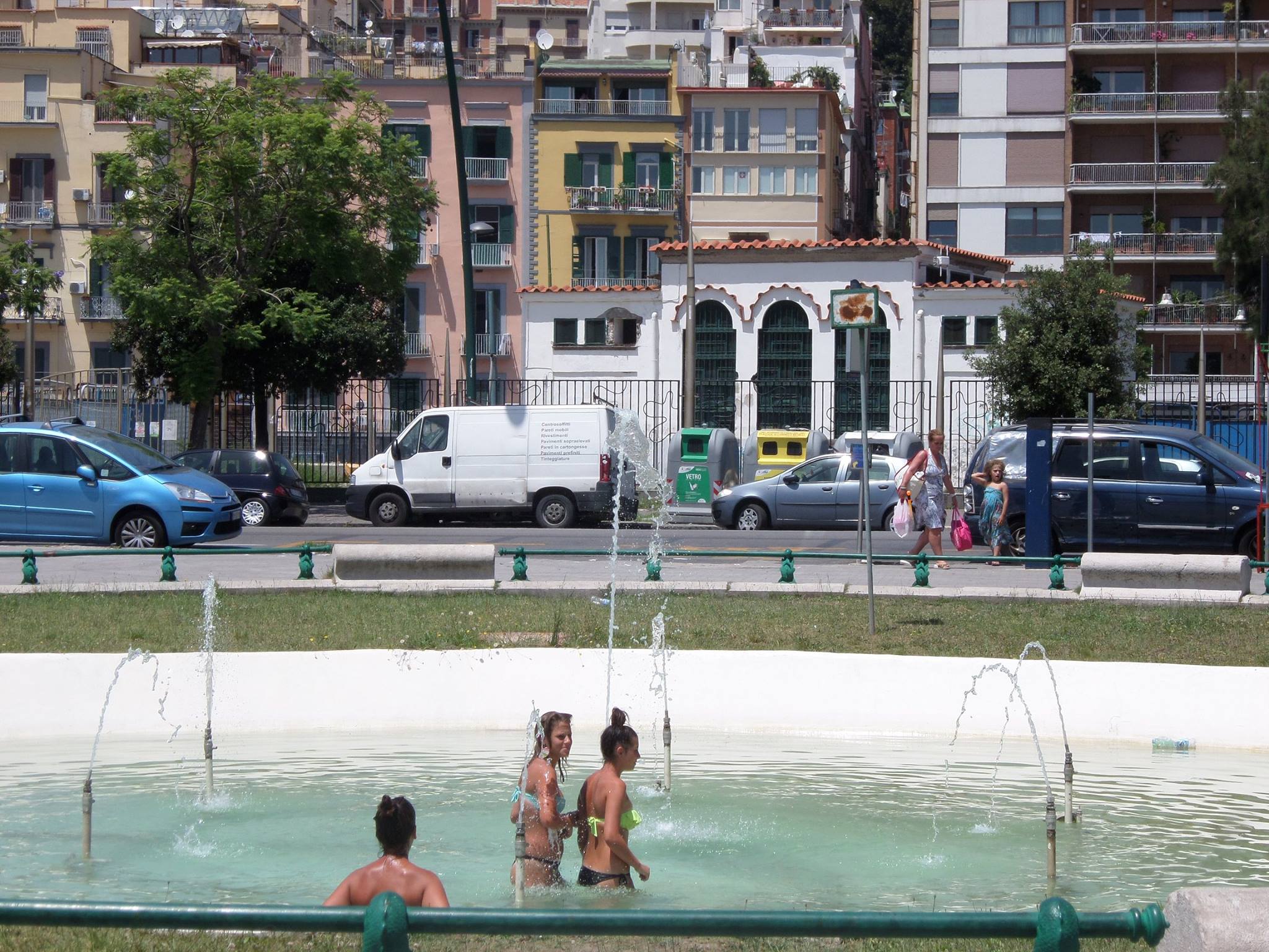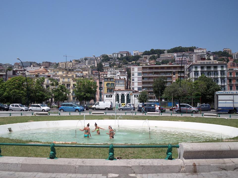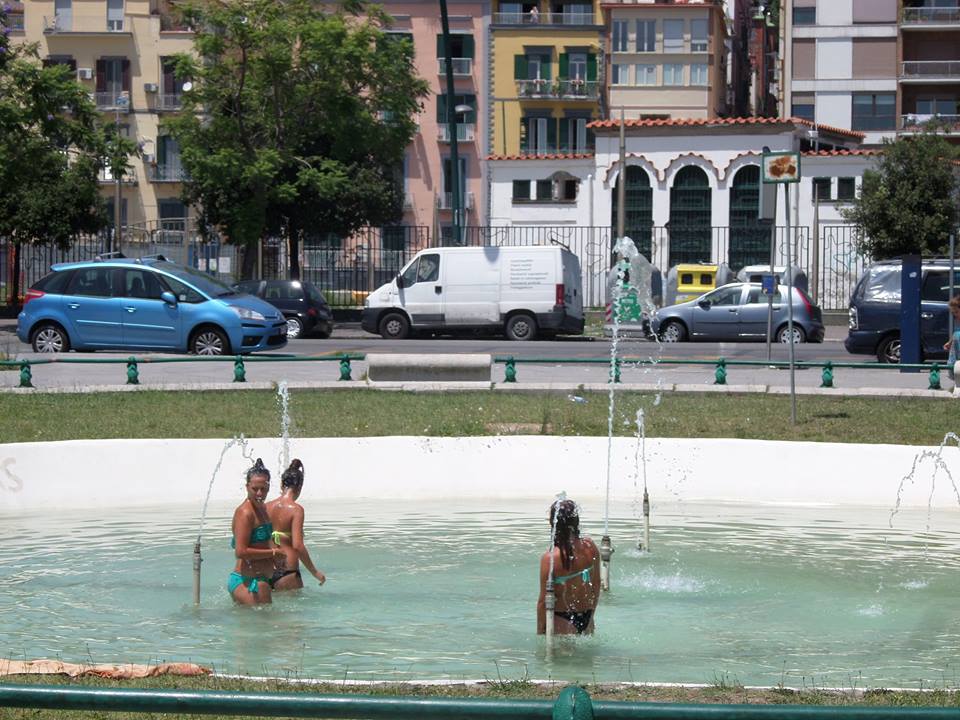 Per difendersi dal caldo torrido ci sono tanti metodi, primo fra tutti quello di farsi un bel bagno in acqua gelata. A Napoli la fonte d’acqua più ricercata è quella delle fontane. Una fontana quando vede uno ”scugnizzo” trema, già sa che dovrà accogliere una bolgia di ragazzi alla ricerca smodata di frescura. L’ultima vittima è la fontana della rotonda Diaz, nei pressi del lido Mappatella. Dalle foto si può notare che il tuffo nella fontana è uno sport ancora molto praticato. Peccato che sia un’abitudine poco civile e al limite del legale.