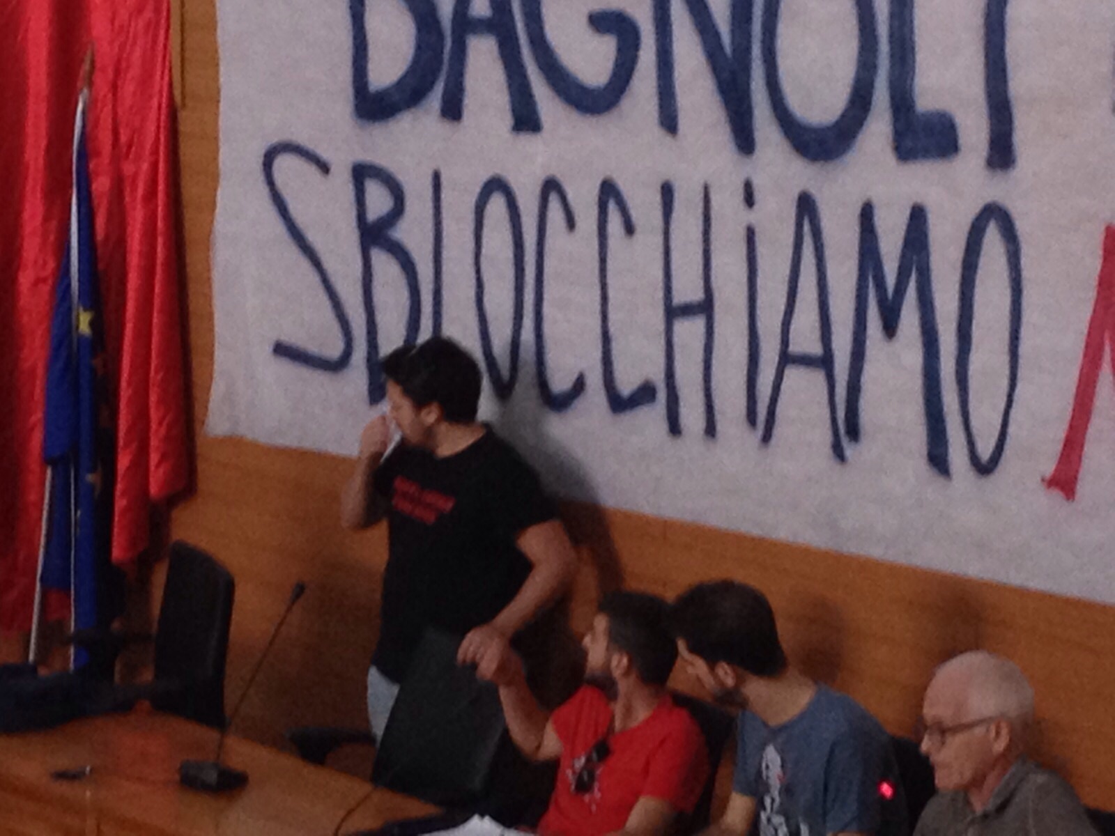 Tra i vari slogan, anche la richiesta, da parte dei manifestanti, di ottenere un’assemblea all’interno della sala riunioni della Municipalità, prontamente concessa. Promotore della mobilitazione il Laboratorio Politico Iskra, che tramite il portavoce Eddy Sorge, ha spiegato che “oggi comincia il commissariamento popolare di Bagnoli, del Laboratorio politico Iskra – la Resistenza oggi è questa: contro il Governo, contro il commissario. Vogliamo il riconoscimento dell’Assemblea popolare di Bagnoli”. Infine, tra i vari striscioni, anche quello dell’associazione Dema fondata dal sindaco Luigi de Magistris.