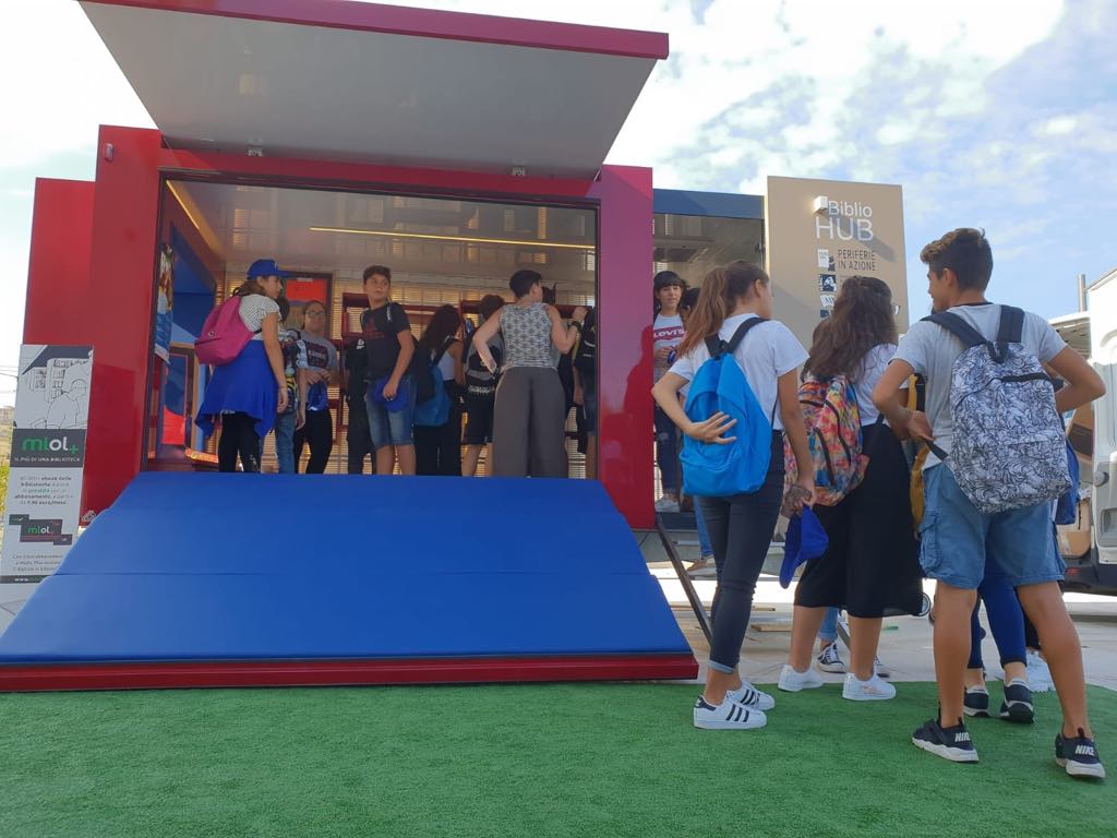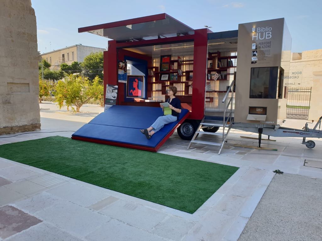 Il BiblioHub, la biblioteca itinerante e strumento di partecipazione, inclusione e coesione sociale, è di fatto una struttura mobile polifunzionale e multimediale di informazioni su cultura, tempo libero e servizi al cittadino, punto di prestito di libri, e-books scaricabili con QR-code, vetrina di bookcrossing, hotspot wi-fi, internet-point, laboratorio ludico-didattico per bambini e luogo d’incontro e di socializzazione.