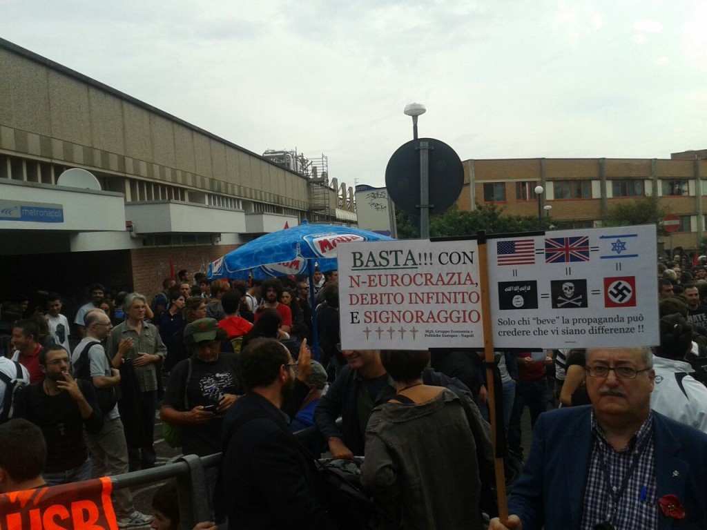 Catastrofe annunciata per oggi, 2 ottobre, il giorno in cui parte dai Colli Aminei, il corteo Block BCE. L’appuntamento era alle 9, ma la partenza è tardata di un’ora a causa della mancata presenza di un gruppo di studenti. In realtà, il “no alla violenza” è stato ribadito più volte e, tra le persone che affollano l’entrata della metropolitana Linea 1 Colli Aminei, ci sono numerosissimi attivisti, giornalisti, esponenti dei centri sociali, gruppi di studenti e donne, mamme, che per anni hanno lottato contro la discarica di Chiaiano. Presente anche lo zio di Ciro Esposito