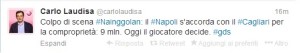 Le voci di mercato sui possibili calciatori che potrebbero approdare a Napoli non si placano: dopo i vari Mascherano, Gonalons, Antonelli, Skrtel arriva un’indiscrezione secondo la quale il patron De Laurentiis avrebbe raggiunto un accordo con il presidente del Cagliari Massimo Cellino per il centrocampista belga Radja Nainggolan.