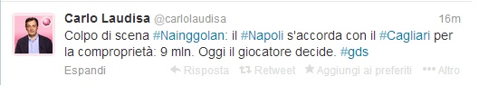 Il giornalista de La Gazzetta dello Sport, Carlo Laudiso, ha pubblicato su twitter un post tramite cui si evince la trattativa: comproprietà a 9 milioni di euro. Si attende soltanto il si del calciatore.