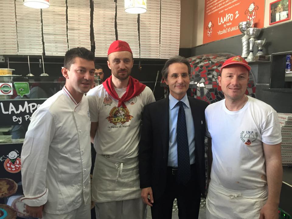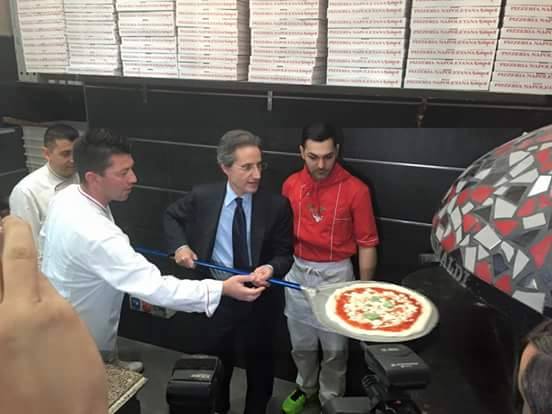 Caldoro pizzaiolo per un giorno in un incontro elettorale presso la pizzeria del Maestro Errico Porzio, titolare della pizzeria Lampo2.