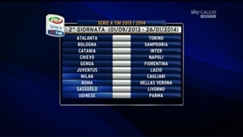 Il primo derby è quello di Genova, infatti Genoa e Samp si affronteranno alla terza giornata. Nella prima giornata la Juventus dovrà vedersela in trasferta con la Sampdoria, il Napoli invece con il Bologna, l’Hellas per il Milan. Inter-Juventus vedrà la luce durante la terza giornata, il derby di Torino avverrà alla sesta, Juventus – Milan alla settima, i bianconeri e i partenopei si affronteranno alla dodicesima, il derby di Roma alla quarta, quello di Milano invece ci sarà alla diciassettesima.