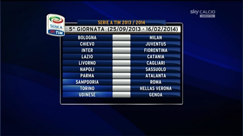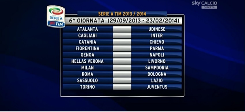 I criteri quest’anno sono molto più restrittivi e le regole generali recitano così: 1. Nessuno scontro diretto tra Inter, Juventus, Milan, Napoli e Roma nei turni infrasettimanali; 2. Nessun Derby alla prima e all’ultima giornata e nei turni infrasettimanali; 3. Nessuna ripetizione di incontri nella prima e nell’ultima giornata rispetto alla stagione precedente; 4. Le squadre impegnate in Champions League e in europa League non si affrontano tra di loro nelle giornate 6, 9, 13 e 16.
