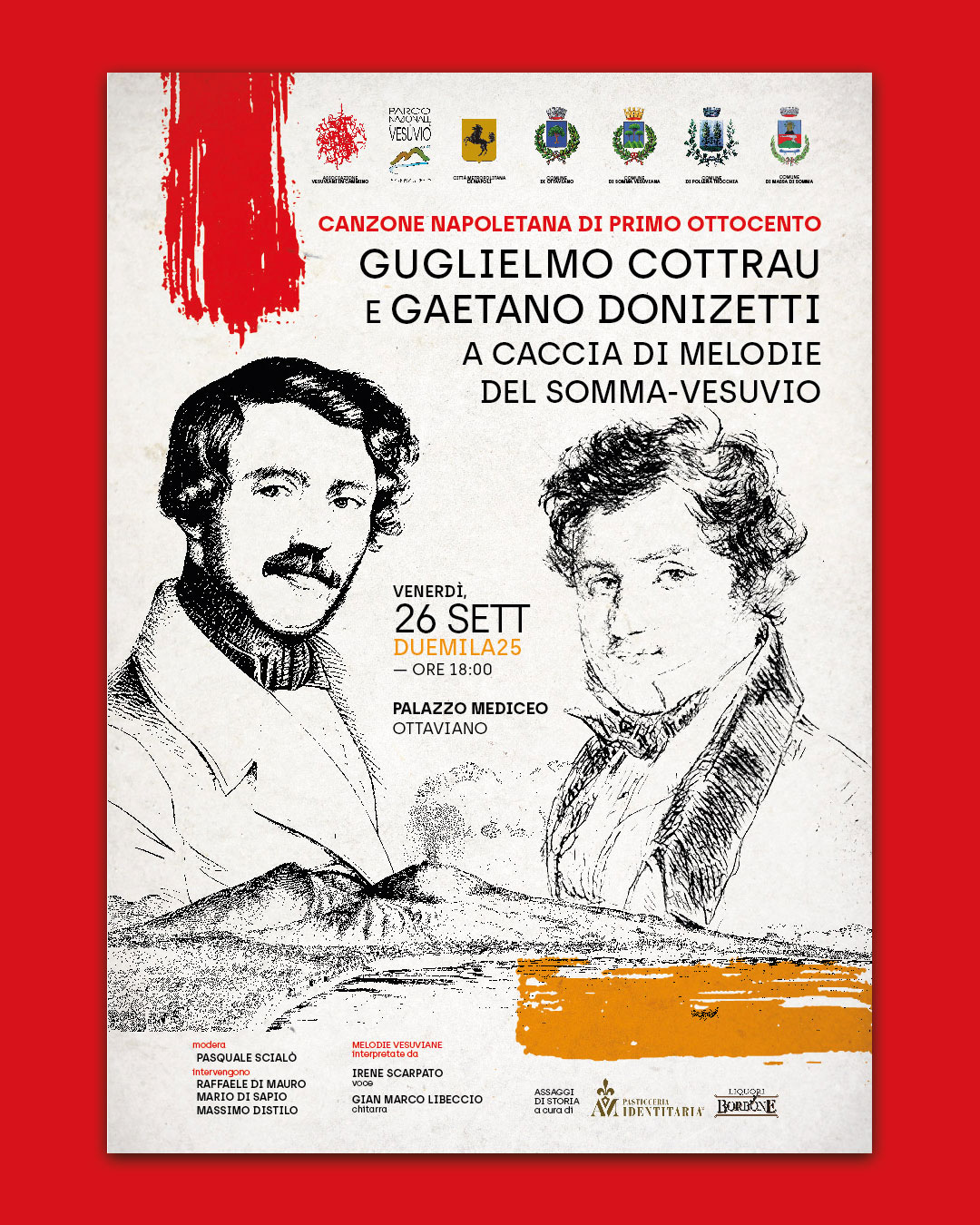 L’Associazione Vesuviani in Cammino presenta l’evento dedicato alla canzone napoletana di primo Ottocento, al territorio vesuviano ed ai rapporti con esso di Guglielmo Cottrau e Gaetano Donizetti, entrambi napoletani d’adozione, protagonisti della scena musicale europea del XIX secolo. La serata celebra anche il bicentenario della prima serie dei Passatempi musicali, raccolte di canzoni napoletane, ariette e musiche da ballo, pubblicate da Guglielmo Cottrau negli anni 1824-25.