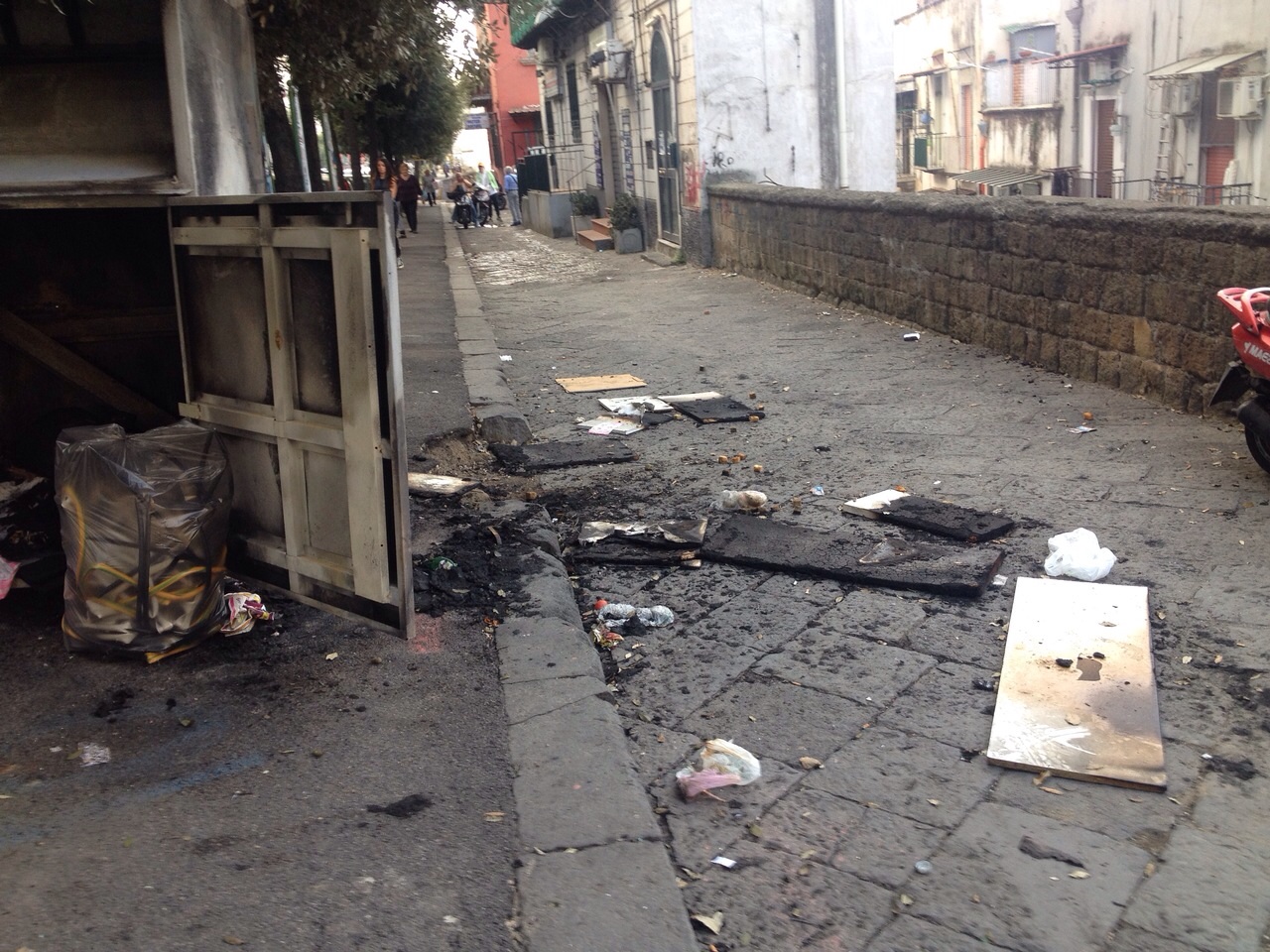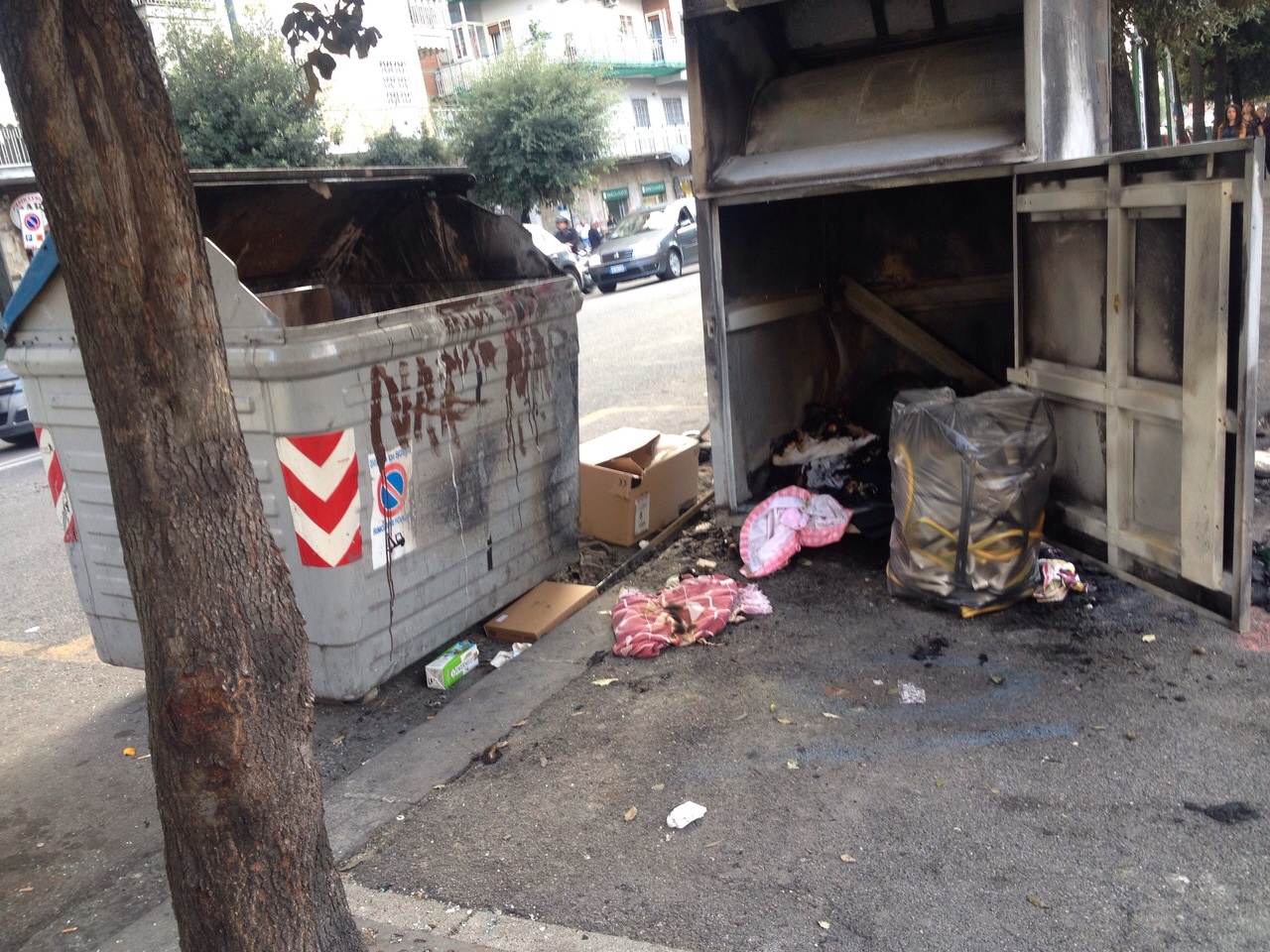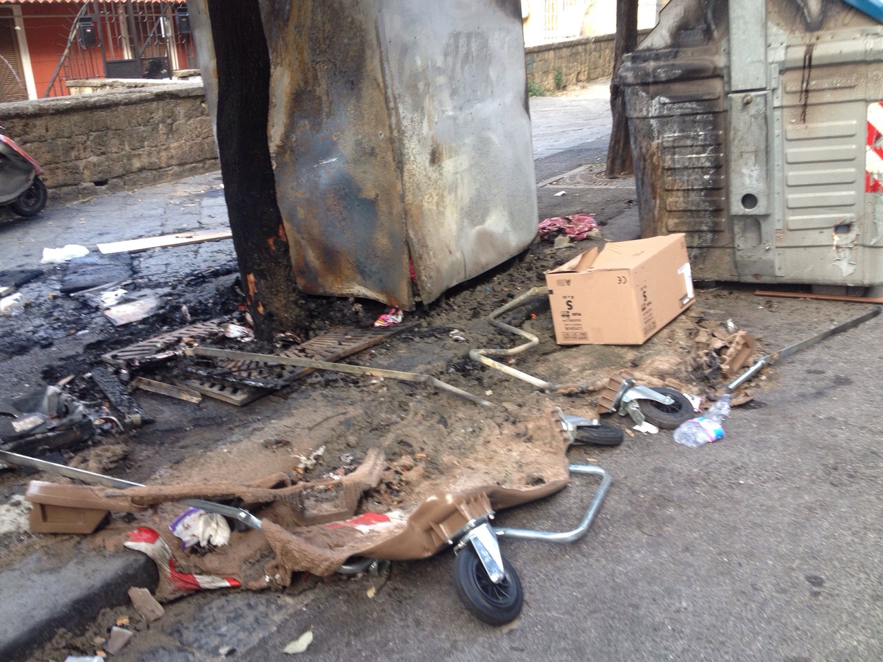 Una lunga fila di cassonetti bruciati. Questo è lo scenario che si può vedere da via Santa Teresa degli Scalzi fino al tondo si Capodimonte. Se si osserva attentamente si può facilmente dedurre come i roghi non siano casuali. I cassonetti bruciati, infatti, sono quelli della raccolta differenziata. Il resto delle campane è stato lasciato intatto. Questo fa pensare a una strategia ben precisa dietro i roghi delle campane della raccolta differenziata.