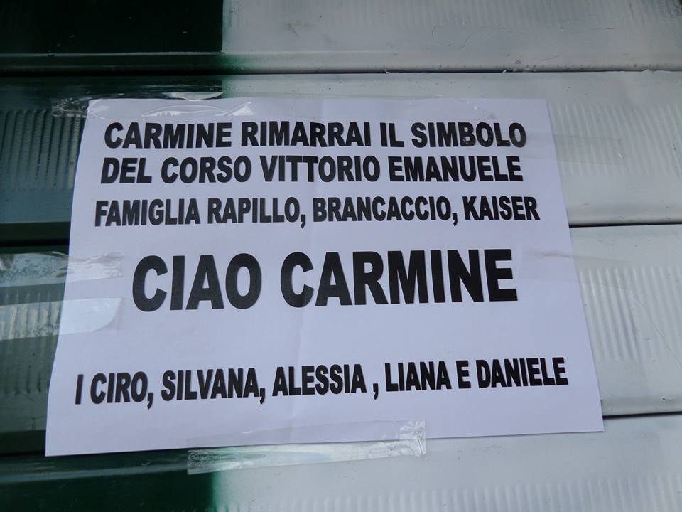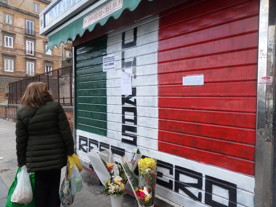 L’edicola di Carmine Del Pesce era un punto di riferimento al C.so Vittorio Emanuele (lato Piazza Mazzini) per gli abitanti del quartiere, che ogni mattina si recavano da lui per comprare un giornale, una rivista, le figurine per i più piccoli o altro. Da oggi però questo rito è stato spezzato da questa morte improvvisa, che ha lasciato tutti senza parole. Quel bigliettino lasciato sulla saracinesca chiusa della sua edicola, “Ciao Carmine“, ha fatto versare più di una lacrima nel quartiere. In molti, appena saputo della notizia, sono andati a dargli l’ultimo saluto, portando in dono fiori o lasciando dei bigliettini, lì dove ogni mattina Carmine Del Pesce era pronto a regalare un sorriso ai suoi clienti.