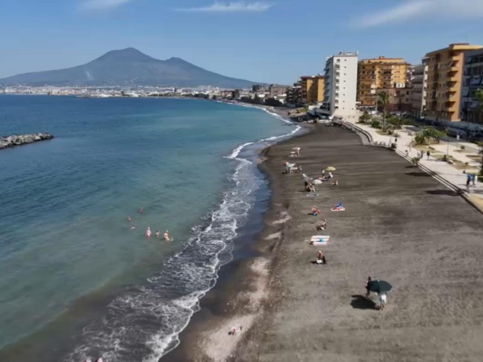 “Stiamo facendo un miracolo perchè è in corso un progetto di bonifica, di realizzazione di reti fognarie, di collettamento delle acque che va da Portici a Torre del Greco e Torre Annunziata dove completeremo il lavoro alla foce del Sarno. Sono in corso e si stanno completando lavori di collettamento delle acque a Pimonte, a Gragnano. Sara’ veramente un miracolo”, ha detto ancora il governatore. Che ha aggiunto: “Avremo il Golfo più bello del mondo con sullo sfondo il Vesuvio, totalmente balneabile, con una spiaggia come questa di Castellammare che è larghissima. Qui si riesce a creare l’economia del mare. E questo nell’ambito di un programma di rilancio di tutta l’area vesuviana”. Ad accogliere il governatore, il sindaco di Castellammare di Stabia Luigi Vicinanza che poco prima dell’ evento si e’ tuffato in acqua.
