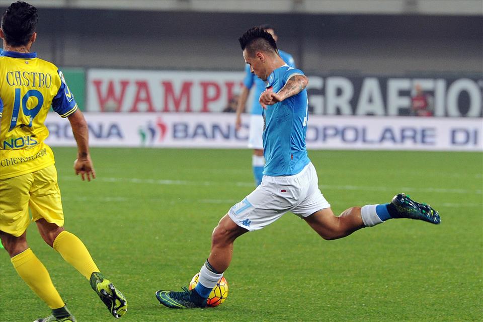 Per l’argentino è solo il preludio alla rete che arriva in avvio di ripresa, quando è bravo a colpire di prima un bel pallone servito al centro da Ghoulam e a fulminare il numero 1 gialloblu. Trovato il gol gli azzurri amministrano e vanno vicini al gol in più di un’occasione senza però pescare la rete risolutiva. Maran allora gioca il tutto per tutto buttando nella mischia gli attaccanti che si ritrova in panchina e disegnando un Chievo a trazione anteriore. In pieno recupero Castro cerca il gol della vita in acrobazia, ma la palla finisce oltre la rete difesa da Reina. Il Napoli tiene e porta a casa altri tre punti importanti per continuare la corsa scudetto. Tra campionato e coppe sono 6 le vittorie messe in fila, 11 i risultati utili consecutivi.