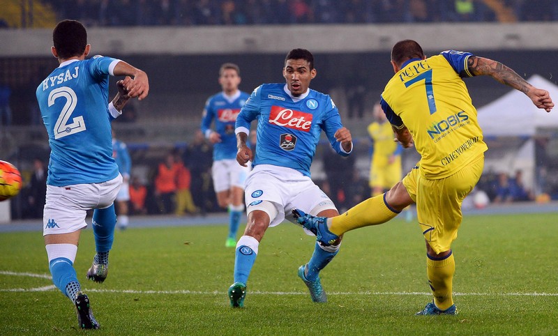 Sono dieci i precedenti a Verona in Chievo-Napoli: otto in serie A e due in serie B. Di queste, 4 vittorie del Chievo 0 pareggi 6 vittorie del Napoli. Sono 12 i gol del Chievo, mentre 14 quelli del Napoli.