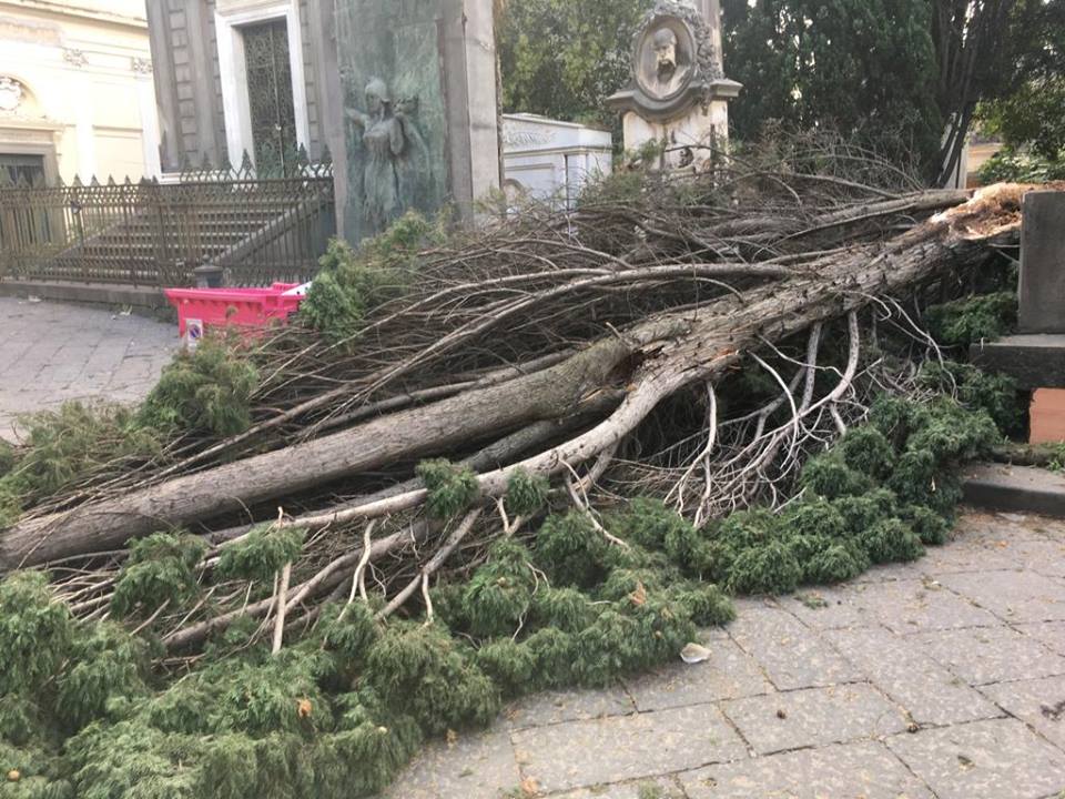 Cimitero di Poggioreale, il crollo degli alberi dovuto alle forti raffiche di vento ha costretto la struttura a chiudere.