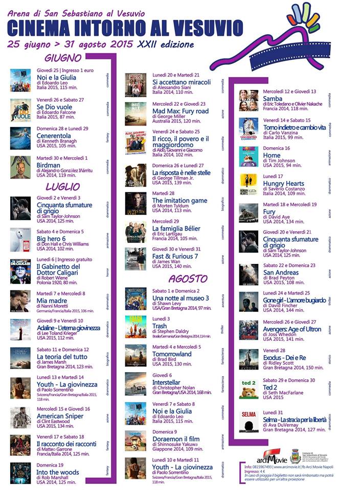 XXII edizione dell’Arena di San Sebastiano “Cinema intorno al Vesuvio“, un evento da non perdere per tutti gli appassionati di cinema che avrà luogo alle pendici del Vesuvio e si terrà al Parco Urbano di Via Panoramica.