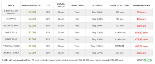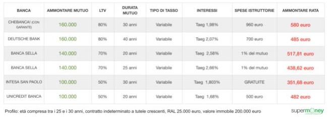 Ad ogni banca è stato chiesto di fornire una simulazione del mutuo che offrirebbe ad un giovane col seguente profilo: