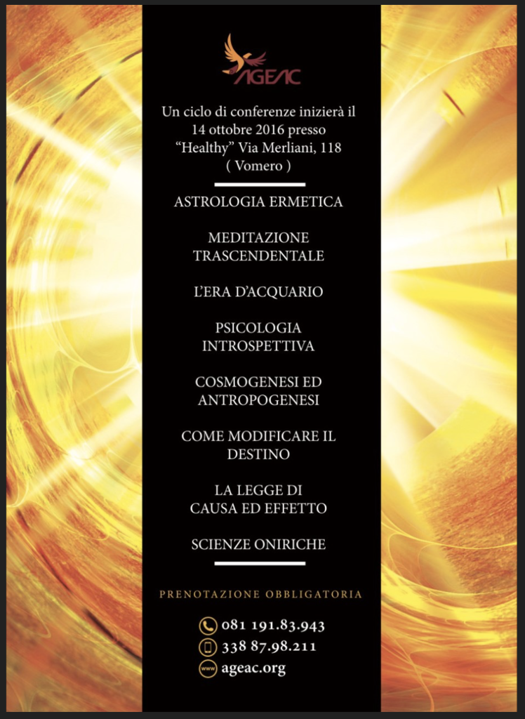 la Quarta Dimensione, le Scienze Oniriche, l’Alchimia, gli Arcani della Sapienza Egizia, la Cabala, i Fattori della Schiavitù Psicologica, l’Universo della Mente, la Legge di Causa ed Effetto, Meditazione Trascendentale, etc..