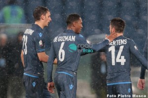 A dare una scossa ai partenopei è ancora una volta Higuain che sfiora il gol con un tiro in diagonale che non va distante dal palo ma l’ultima occasione pericolosa del primo tempo è per i padroni di casa che sprecano ancora con Klose che centra Andujar prima e con Anderson che si fa ribattere il pallone sulla linea da Britos poi.