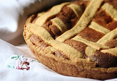 E sempre con la cannella, potevo spolverizzare il morbido amalgama fatto scivolare piano piano nella fodera di pasta frolla prima che fosse imprigionato nell’intreccio di nastri realizzati con la medesima pasta. Prima che il divino prodotto fosse ingoiato dal forno, in un percorso costeggiato da effluvi paradisiaci e tentazioni infernali che si concludeva intorno alla tavola imbandita per la festa quando la benedizione del capofamiglia, con palme e acqua benedetta, scioglieva a’ Gloria. Finalmente.