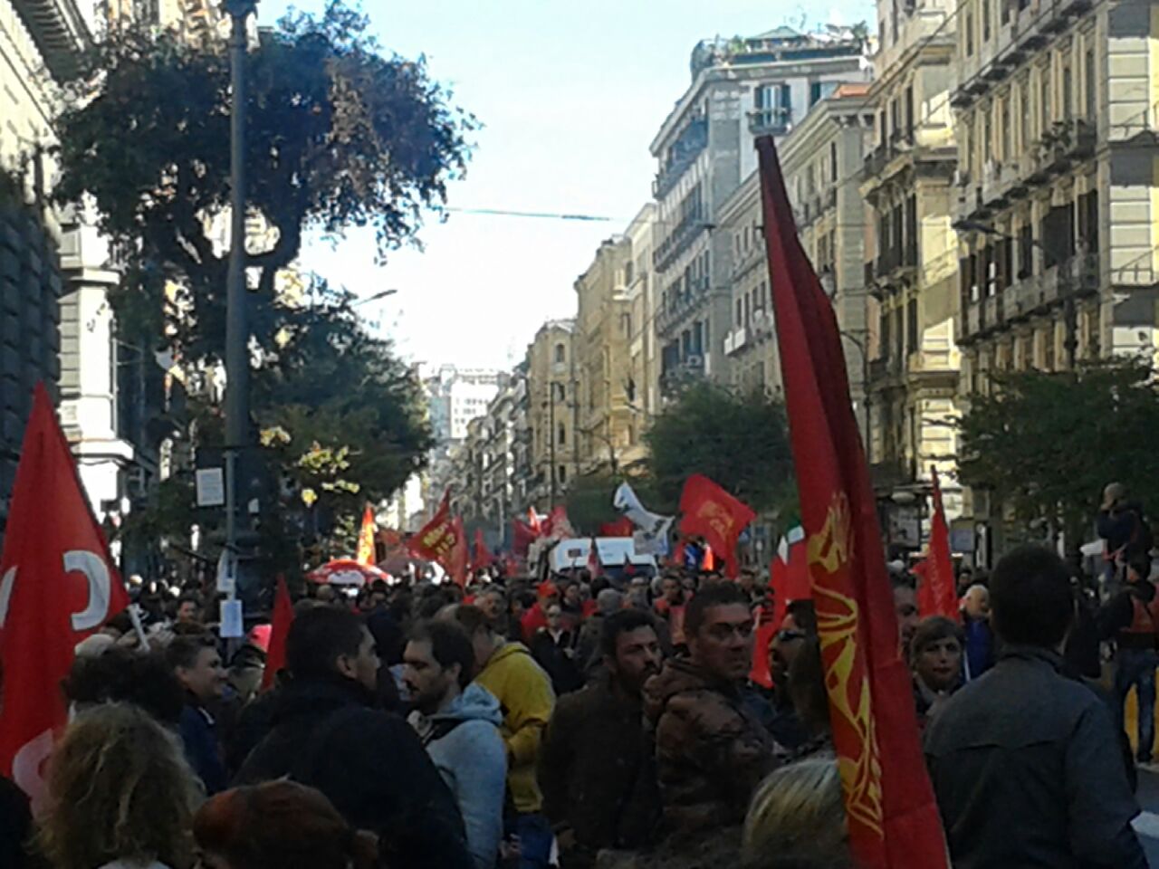 Oltre 20.000 persone stanno manifestando da questa mattina alle 9.30 al corteo Fiom, Federazione Italiana Operai Metalmeccanici, previsto per oggi 21 novembre, che precede lo sciopero generale del 12 dicembre. Tutto il centro sud, a cui si sono uniti anche i liceali, stanno protestando contro il Governo intenzionati a proporre un’alternativa alle attuali manovre: “Qui nel Mezzogiorno non si investe da anni e bisognerebbe invertire questa tendenza”. Il corteo è legato allo sciopero di otto ore di tutti i metalmeccanici.