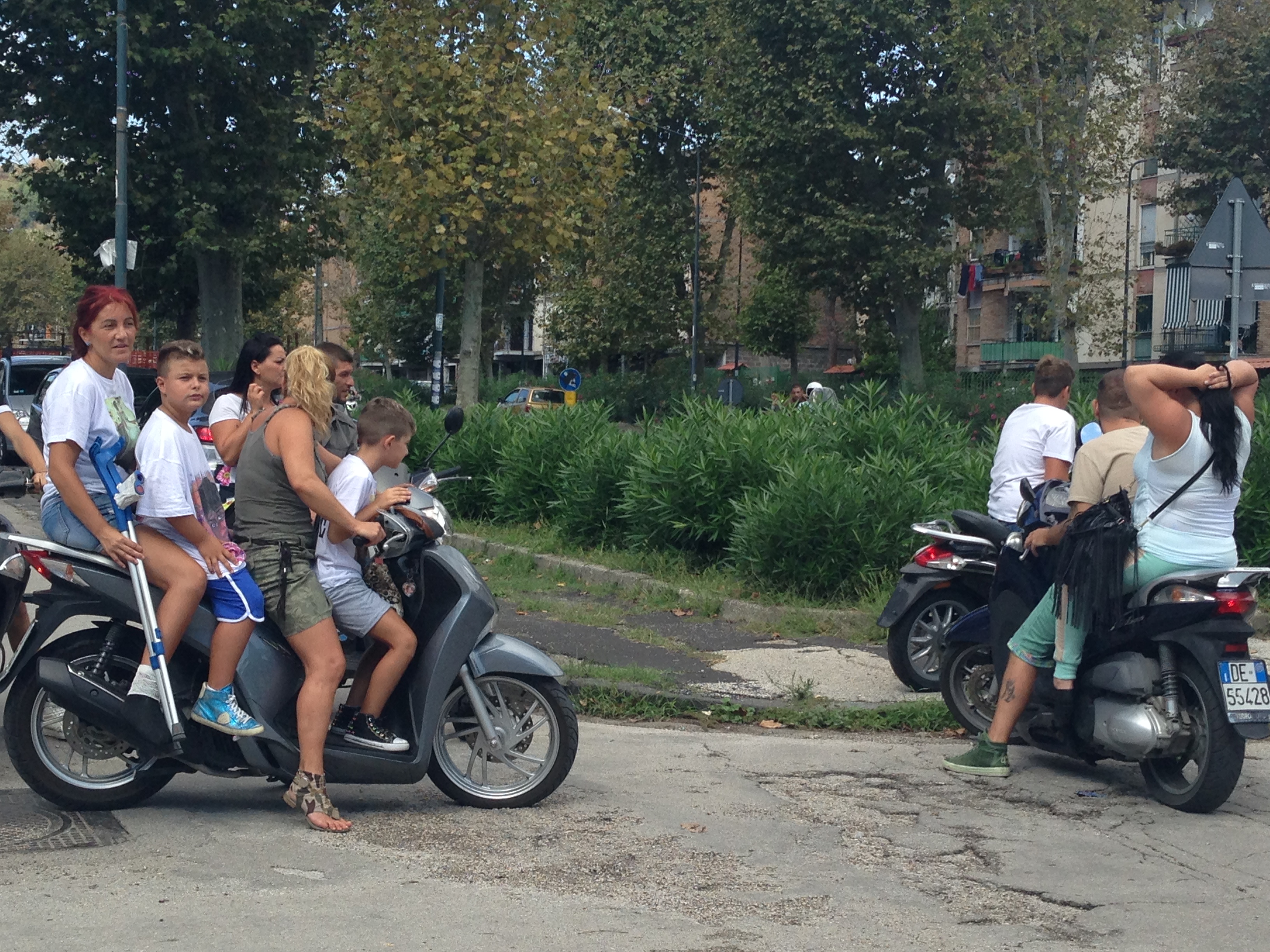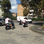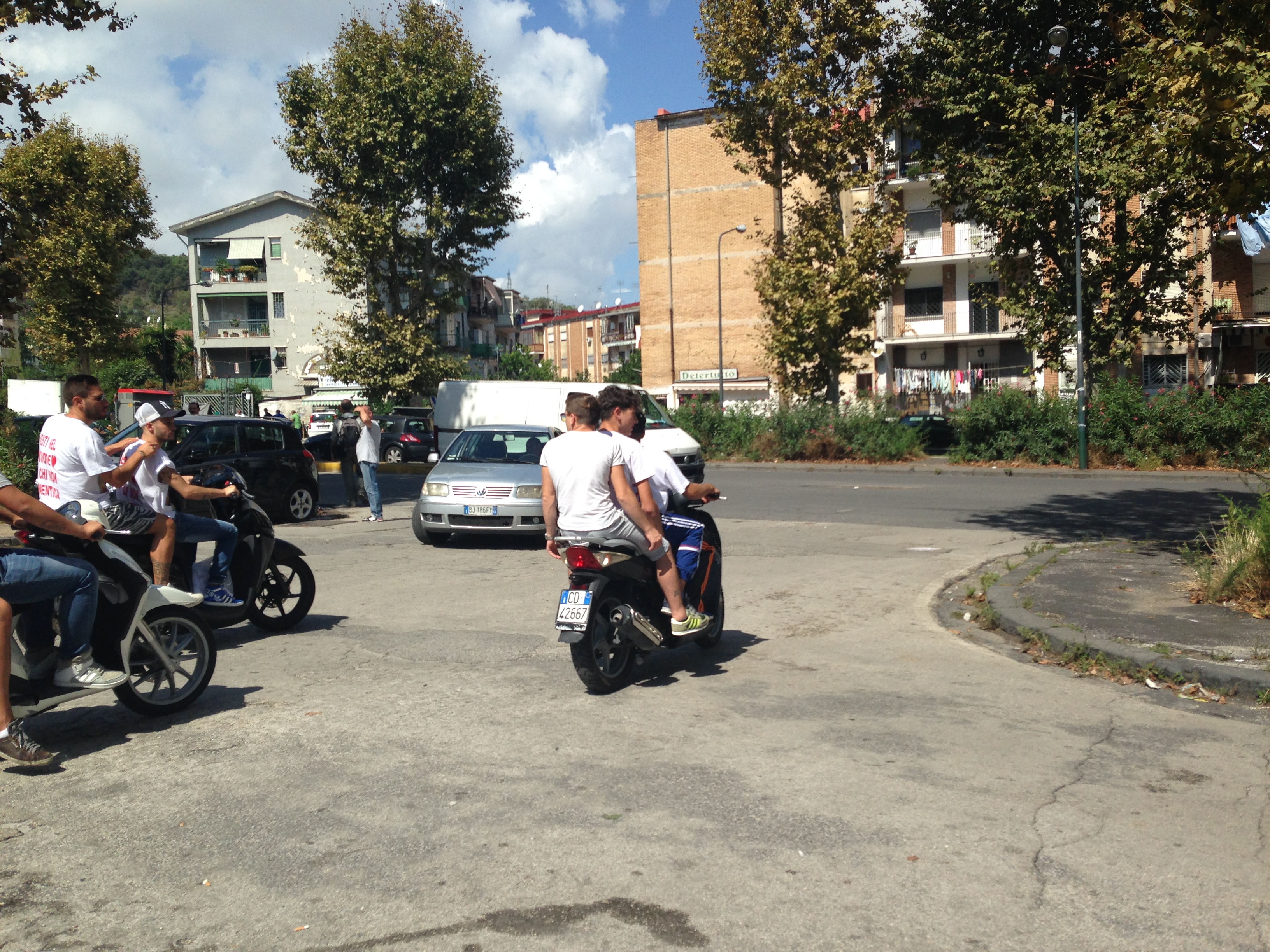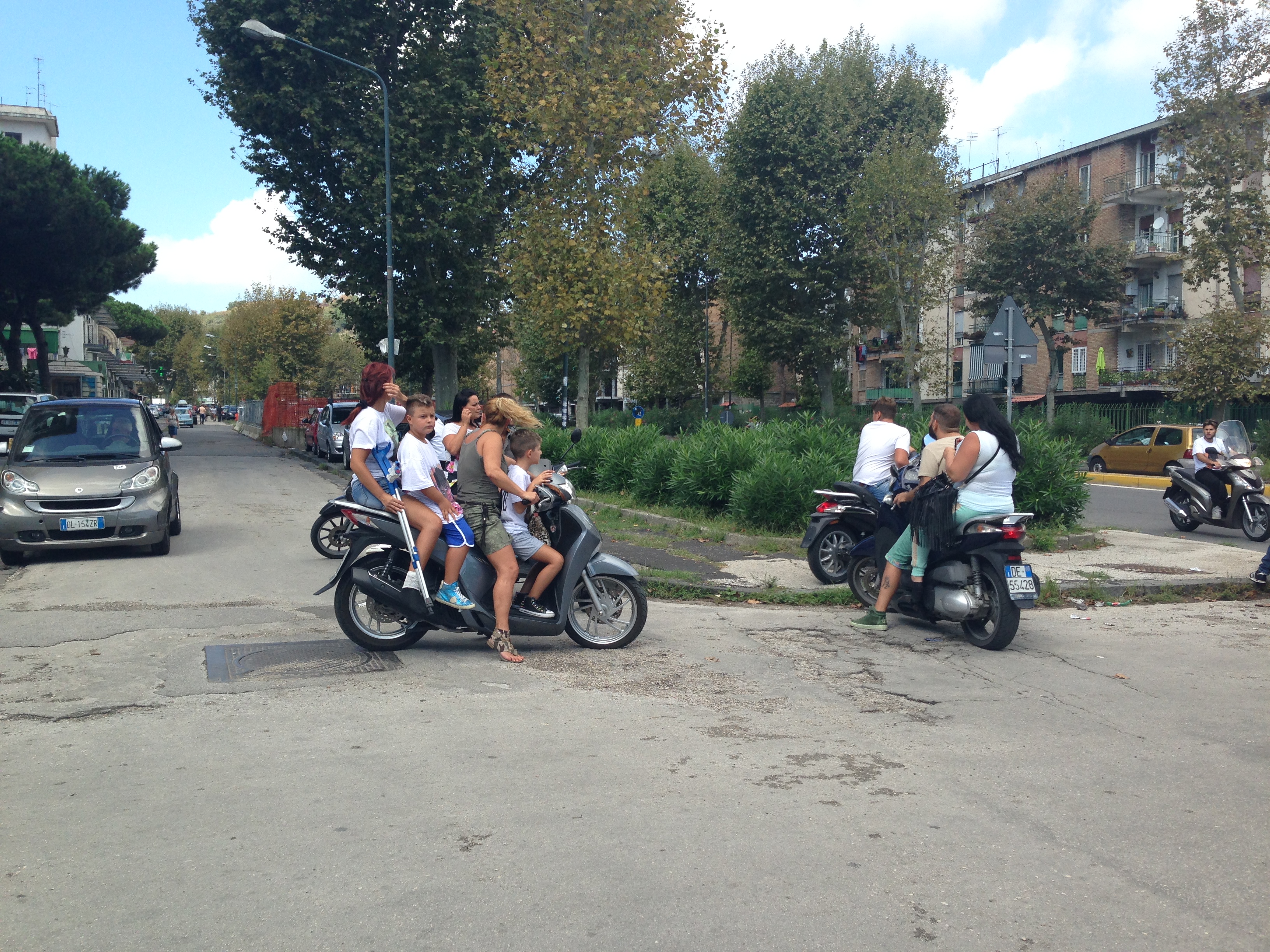 Al Rione Traiano, come in tutti i quartieri senza legge del mondo, è consuetudine consolidata andare in giro su due ruote senza indossare l’obbligatoria protezione del casco, stringendosi in tre o in quattro su una sella che spesso non potrebbe ospitare più di una sola persona.