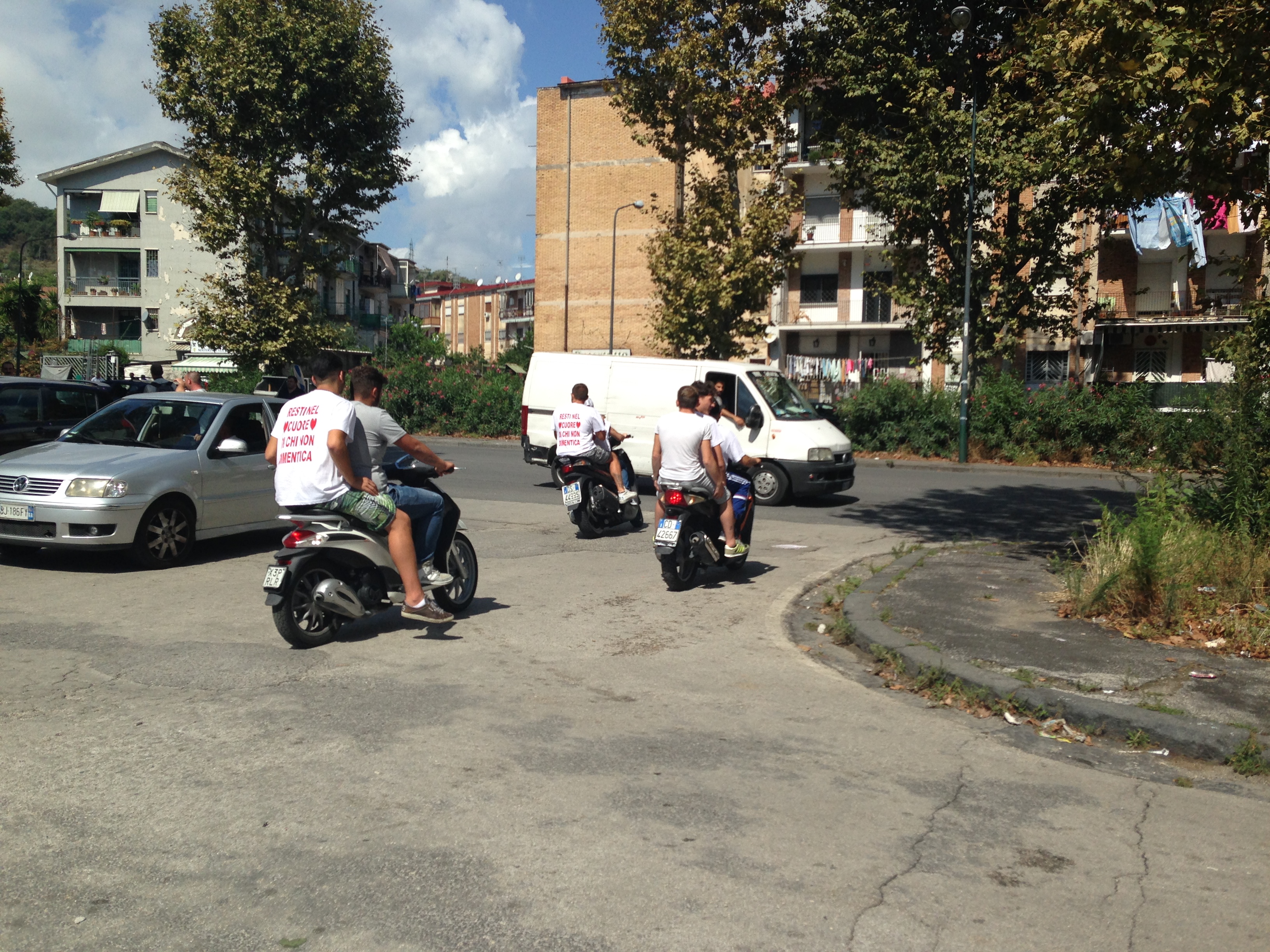 Hanno scortato il corteo che ha accompagnato la bara bianca lungo tutte le strade del quartiere: dalla chiesa della Medaglia Miracolosa, alla casa che divideva con i genitori e i fratelli, fino al luogo in cui Davide Bifolco è stato ucciso. Uno sciame di scooter, vespe e motorini. In due, in tre, addirittura anche in quattro in sella. Tutti rigorosamente senza casco, qualcuno anche senza targa.