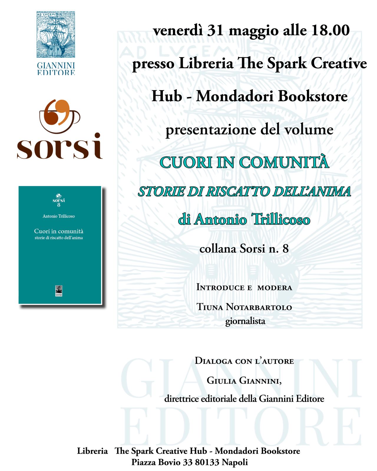 Appuntamento napoletano per il giornalista Antonio Trillicoso, che venerdì 31 maggio alle ore 18 presenterà il suo libro pubblicato con la Giannini Editore: “Cuori in comunità” presso la libreria The Spark Creative Hub Mondadori Bookstore, Piazza Bovio 33 Napoli.