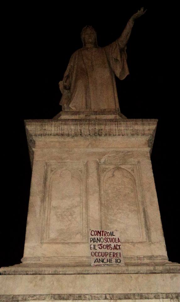 Dante contro Renzi: ecco la protesta degli studenti con i monumenti (FT)