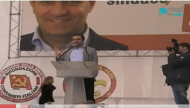 Inizia la campagna elettorale del candidato della sinistra. Con lui sul palco di Piazza del Gesù, Di Pietro e il segretario di Rifondazione Comunista Ferrero.