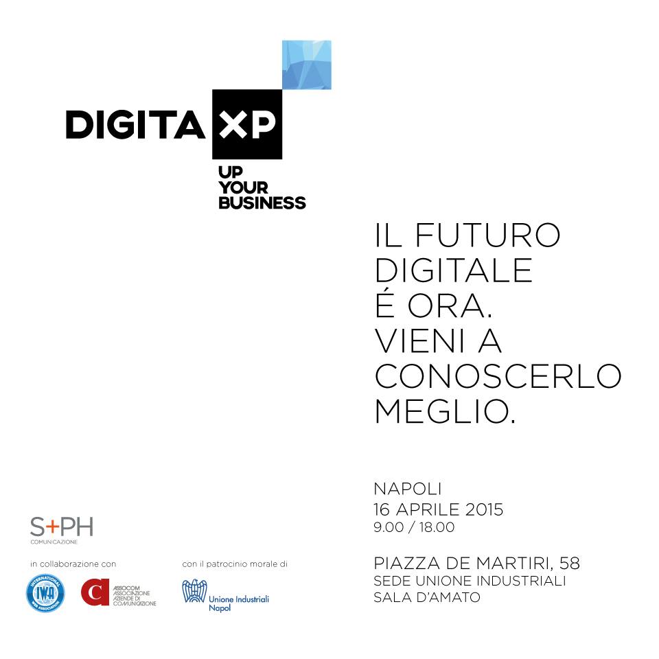 DigitaXP nasce dall’idea di S+PH Italia, agenzia di comunicazione integrata napoletana, in collaborazione con ASSOCOM, associazione aziende di comunicazione e IWA Italy, associazione internazionale per la professionalità nel web, con l’intento di informare i giovani imprenditori sull’importanza del digitale come nuovo linguaggio universale. Durante l’evento, saranno presentate realtà operative di aziende che metteranno a disposizione dei partecipanti il proprio bagaglio di esperienze nel campo del digitale. Inoltre, sarà presentato DigitaXP Magazine, un web magazine dedicato al mondo imprenditoriale. Segui il countdown dell’evento sul sito ufficiale DigitaXP.com.