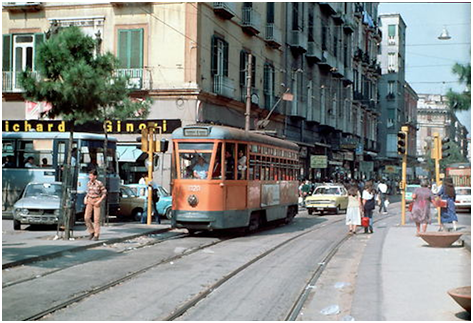 Il Tram passeggia pigramente con il suo carico di passeggeri, non c’è molto traffico in quanto pochi lavorano durante il fine settimana, sotto la fermata, si discute degli argomenti più disparati, dalla politica al campionato di calcio.