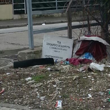 Ecco la targa di Eduardo Scarpetta gettata tra i rifiuti: