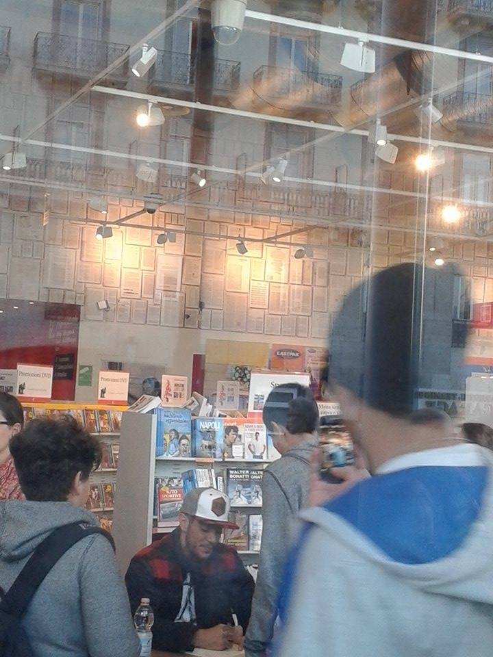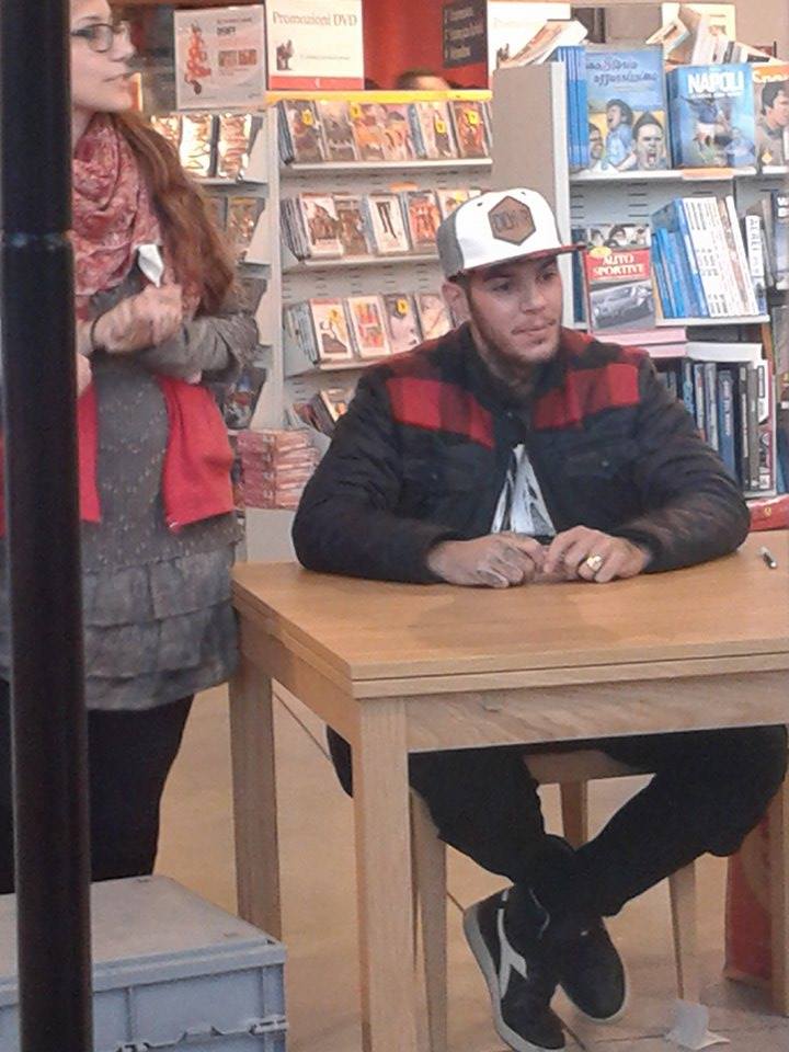 Emiliano Rudolf Giambelli, in arte Emis Killa, famoso rapper italiano, dopo il successo di questa estate con la canzone “Maracanà” inserita nella riedizione del terzo album in studio Mercurio e pubblicato il 28 maggio 2014ha fatto tappa alla Feltrinelli di Napoli questo pomeriggio per la presentazione del suo primo libro: “Bus 323 Viaggio Di Sola andata“.