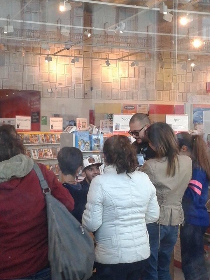 Emiliano Rudolf Giambelli, in arte Emis Killa, famoso rapper italiano, dopo il successo di questa estate con la canzone “Maracanà” inserita nella riedizione del terzo album in studio Mercurio e pubblicato il 28 maggio 2014ha fatto tappa alla Feltrinelli di Napoli questo pomeriggio per la presentazione del suo primo libro: “Bus 323 Viaggio Di Sola andata“.