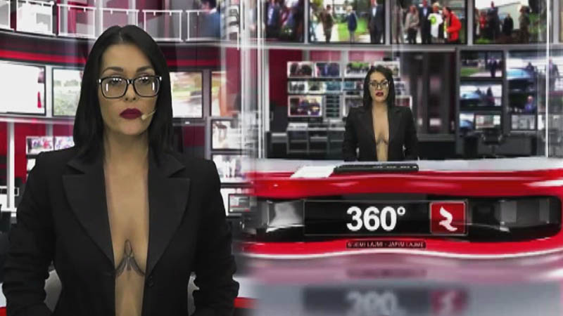 Mai come questa volta, vale il principio ”il fine giustifica i mezzi” e anche l’abbigliamento, aggiungiamo noi. Attenzione in questa emittente albanese Enki non è l’unica ad esibirsi durante il Tg.