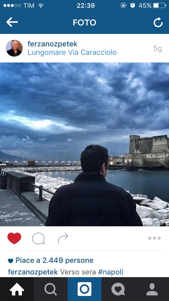 Le foto scattate dal regista appaiono sul suo profilo Instagram con un hashtag sempre presente #seilamiavita. Il Vesuvio, la pizza, il Castel dell’Ovo, Mergellina, il mare, Pulcinella, le persone che passeggiano e che rendono Napoli ancora più speciale. Questo è ciò che immortala Ferzan Ozpetek. E ancora, Capri in lontananza, il teatro San Carlo durante le prove de La Traviata, piazza del Plebiscito. Il regista ha inoltre deciso di raccontare Napoli, “Ora che sento di averla capita, mi piacerebbe raccontarla“, dice Ozpetek al Corriere.it.