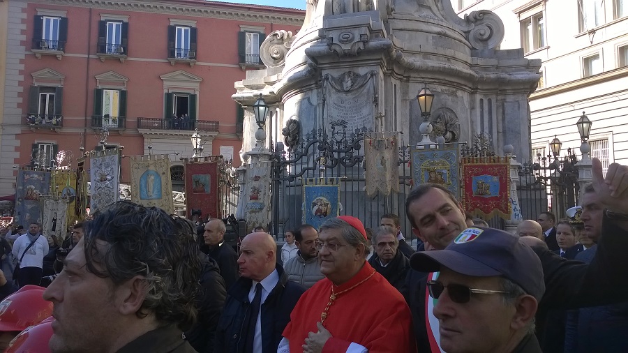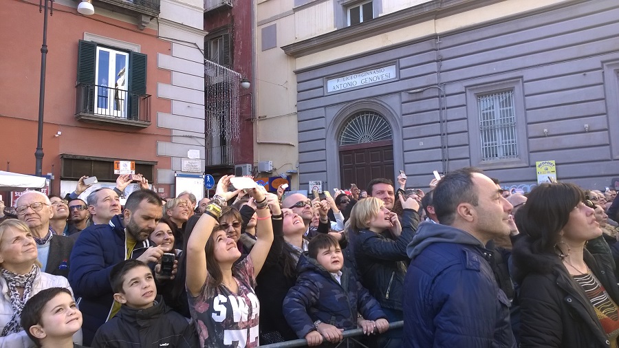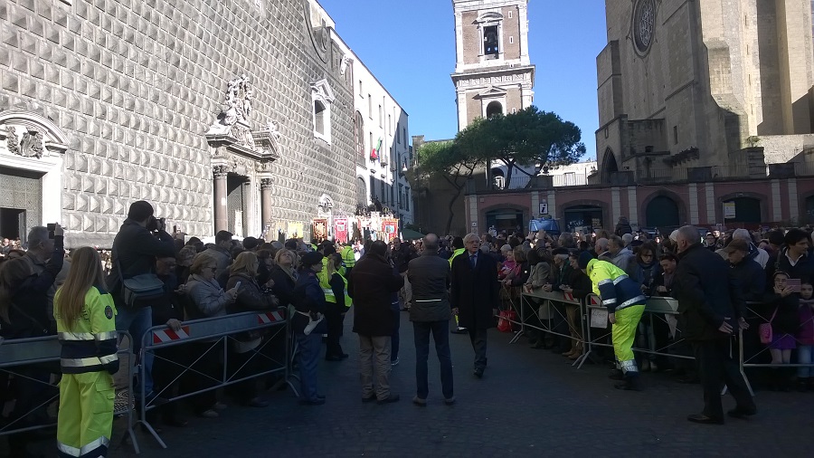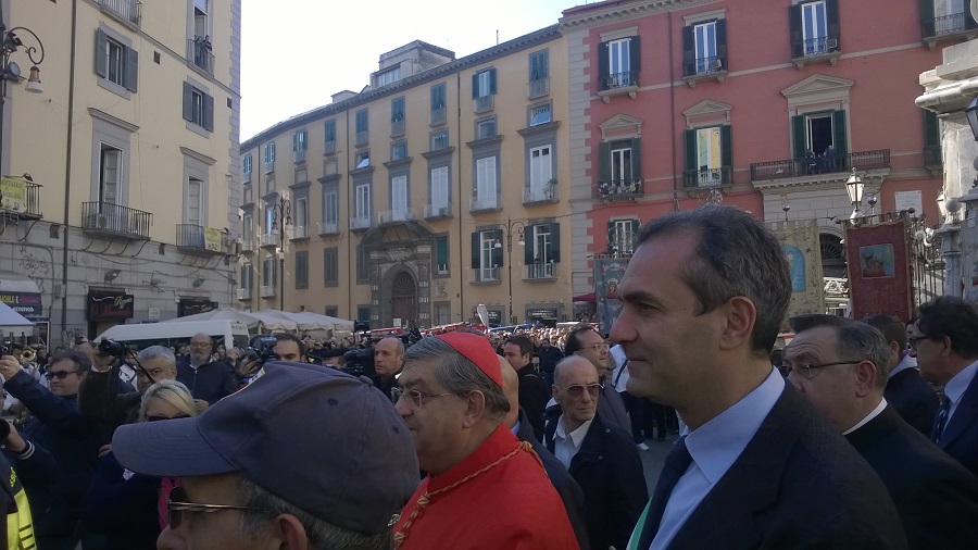 Un raggiante Luigi de Magistris si è soffermato, al termine della cerimonia, con la stampa a cui ha rilasciato dichiarazioni sullo stato attuale della città e sulla vera e propria invasione festosa dei tanti turisti: “Siamo entusiasti della presenza di tanti turisti – ha dichiarato de Magistris – soprattutto perché un numero così elevato di persone stanno a testimoniare l’ottimo lavoro portato avanti da questa amministrazione, dai comitati civici, dalle associazioni, dalla Chiesa e dai Napoletani. Dobbiamo mostrare il nostro lato accogliente e Napoli lo sta facendo nel migliore dei modi. Siamo felici – ha concluso il sindaco – e un numero così alto di turisti ci da la carica per migliorarci ancora di più per il futuro”.