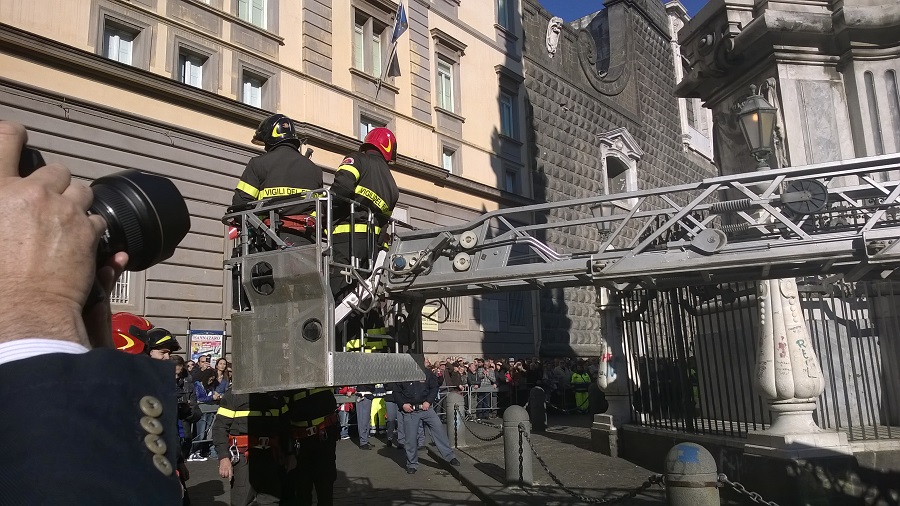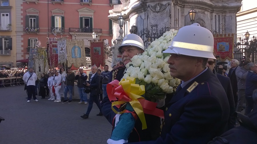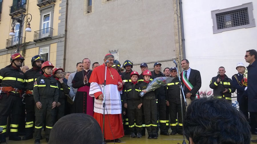 Una festa dell’Immacolata senza precedenti a Napoli. Nella storica piazza del Gesù si è svolta la rituale “consegna” da parte dei Vigili del Fuoco del grosso fascio di fiori donato dal comune di Napoli. Una piazza del Gesù gremita ha accolto con fragorosi applausi il momento in cui tre pompieri sono saliti a oltre 30 metri d’altezza per fissare l’omaggio floreale della città alla Madonna. Il cardinale Sepe ha rivolto alla folla un lungo discorso in cui ha toccato tutti i principali temi dell’attualità cittadina.