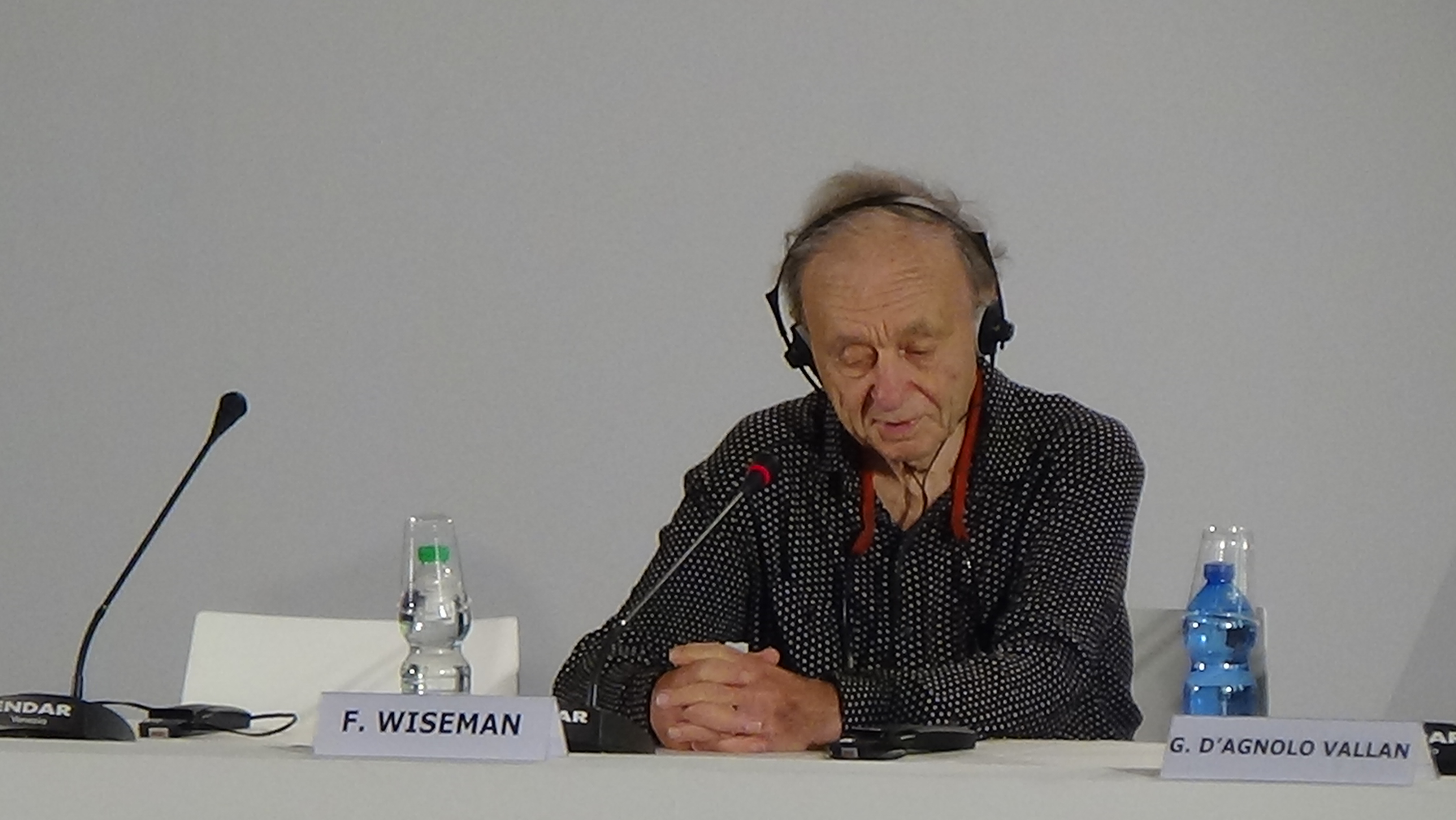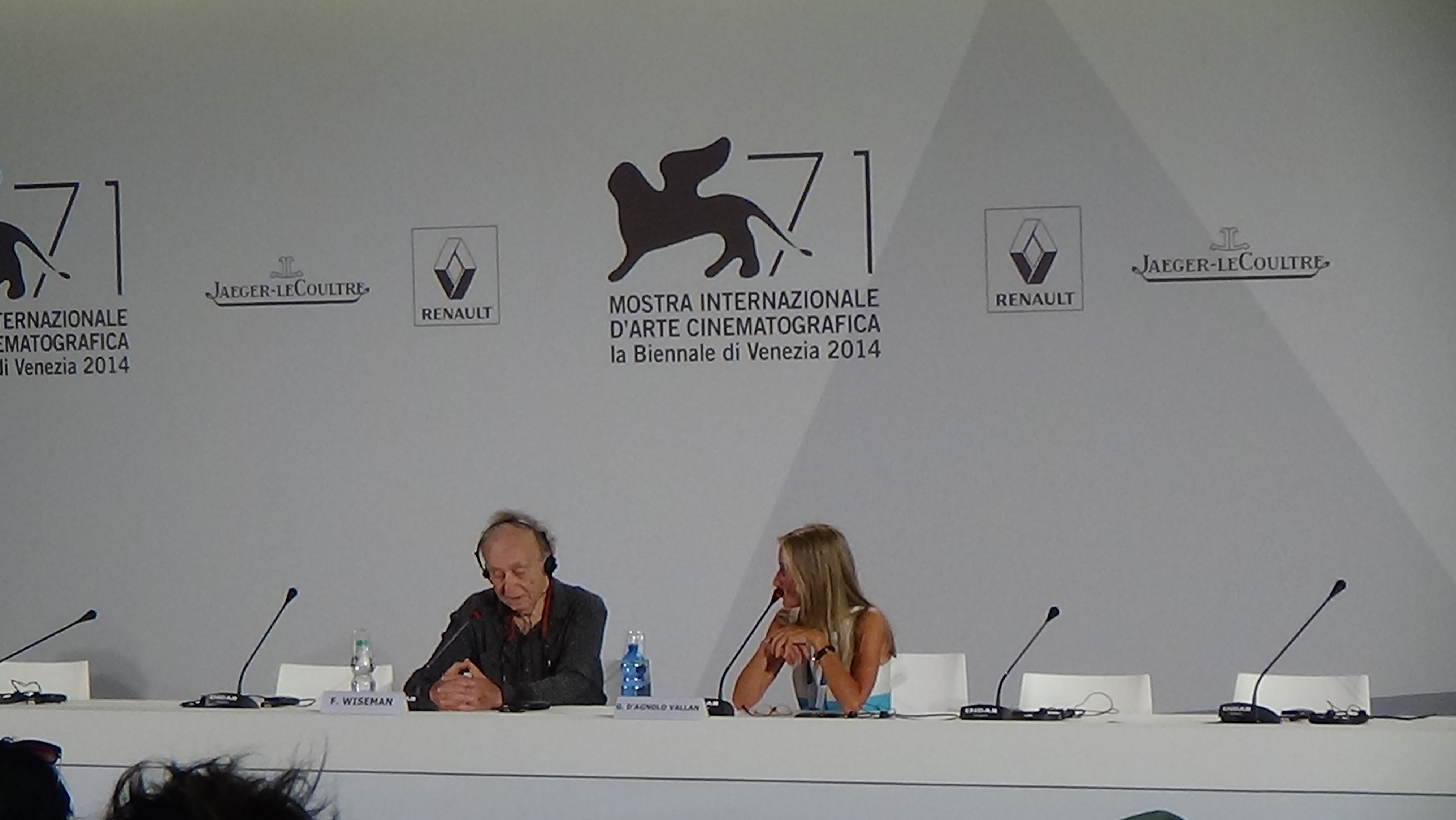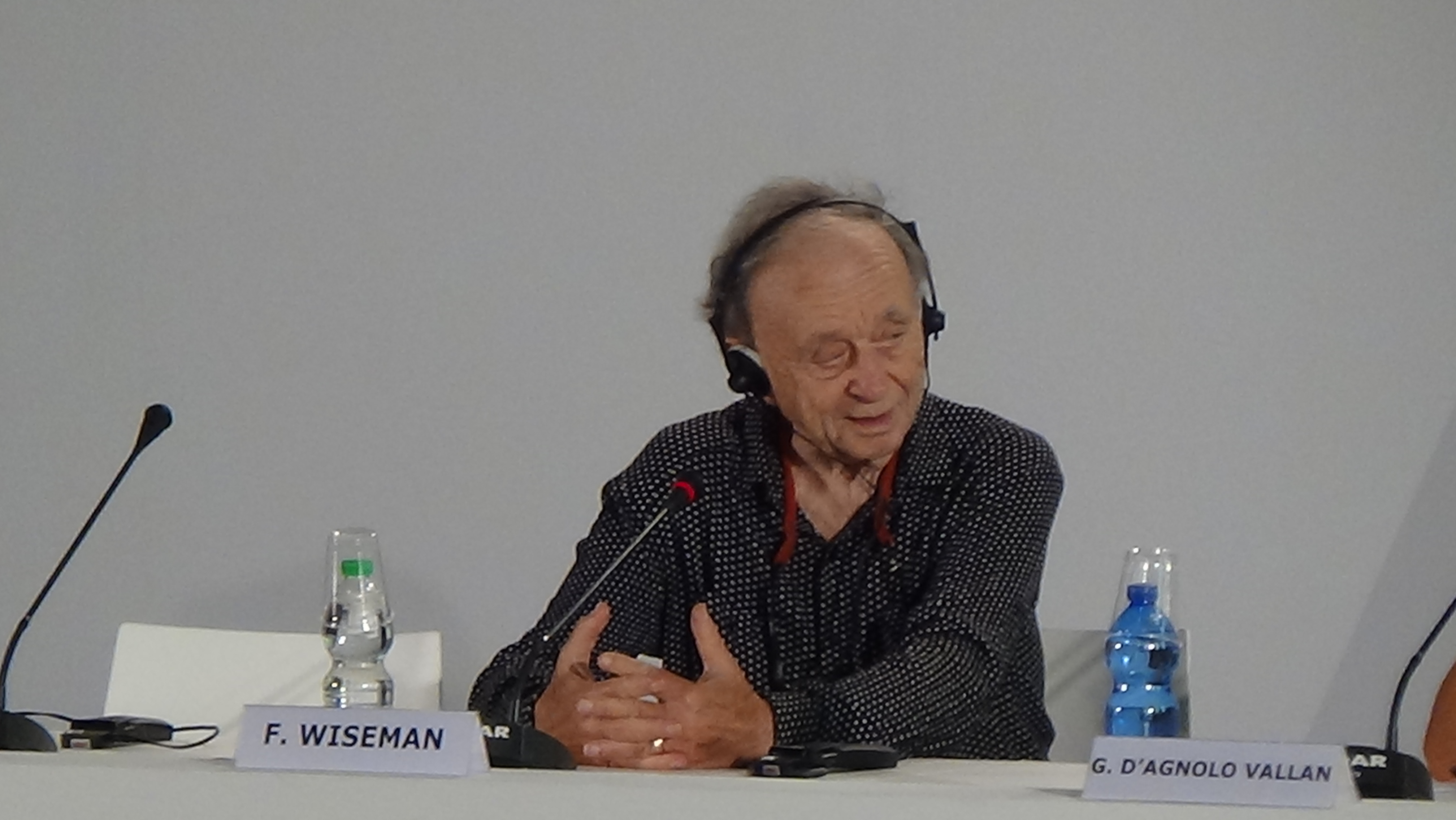 Qui al Festival di Venezia comincia a vedersi un po’ di movimento: attori e pubblico affollano il Lido per partecipare agli eventi quotidiani. Possiamo quindi dimenticarci, finalmente, dei politici e delle soubrette che fino ad oggi hanno occupato la scena immeritatamente. Alle 17 di questo pomeriggio avverrà l’assegnazione del Leone D’Oro alla carriera per il grande Frederick Wiseman, il più importante documentarista vivente, che questa mattina ha presenziato la conferenza stampa.