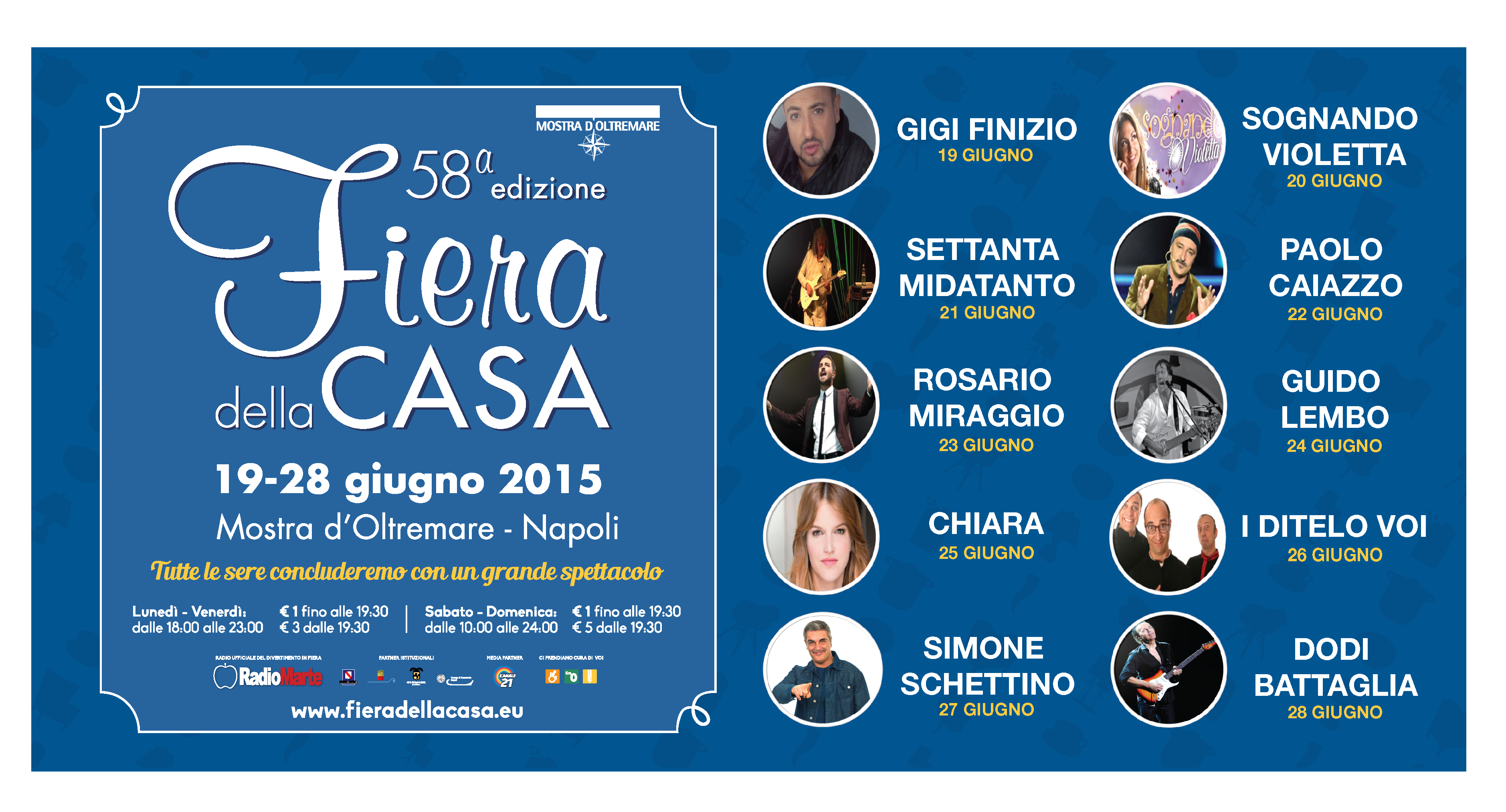 La Mostra D’Oltremare sta ospitando al suo interno, dal 19 al 28 giugno, la 58esima edizione della Fiera Della Casa 2015. Grande successo di pubblico; oltre 40.000 visitatori hanno affollato gli oltre 200 stand della fiera soltanto nei primi 4 giorni. La manifestazione estiva è ormai entrata nella tradizione della città, dedicata all’arredamento, all’artigianato e all’enogastronomia locale, il tutto contornato da concerti serali sul palco installato davanti al teatro Mediterraneo, spettacoli di cabaret e tantissimi ospiti. La presidente della Mostra d’Oltremare, Donatella Chiodo, ha dichiarato di essere felice di aver notato tante famiglie ricordare i tempi d’oro della Fiera.