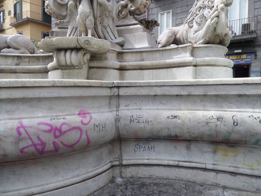 In città purtroppo gli atti vandalici ai danno di monumenti non cesseranno mai, i giovani napoletani non hanno rispetto della propria Napoli e dell’arte che ospita. I nuovi atti vandalici alla Fontana Monteoliveto ne sono una prova. C’è bisogna di un maggiore controllo e sanzioni durissime per chi rovina le bellezze della città, lo gridano anche Borrelli e Simioli in radio: “La Soprintendenza li aveva denunciati per “pulizia” abusiva e adesso il sito è stato di nuovo preso d’assalto dai vandali. A Napoli c’è una frenesia inarrestabile soprattutto tra i più giovani a deturpare i monumenti che gli enti locali e la soprintendenza dovrebbero recintare quasi in toto prevedendo sanzioni durissime per chi li rovina“. Di seguito le foto pubblicate da Simioli e Borrelli sul nuovo stato della Fontana Monteoliveto.