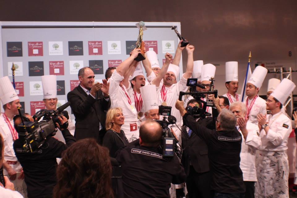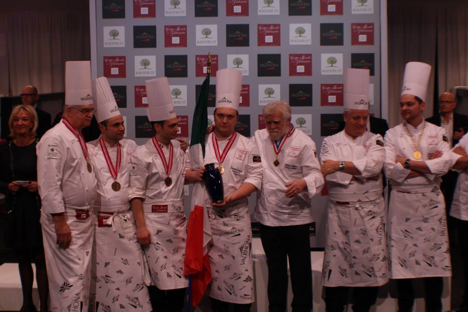 Sulla pagina Facebook ufficiale Club Coupe du Monde de la Pâtisserie Sezione Italia sono comparse alcune foto della premiazione di Francesco Boccia e il suo team, gioiosi e sorridenti per aver vinto l’importantissima gara mondiale: