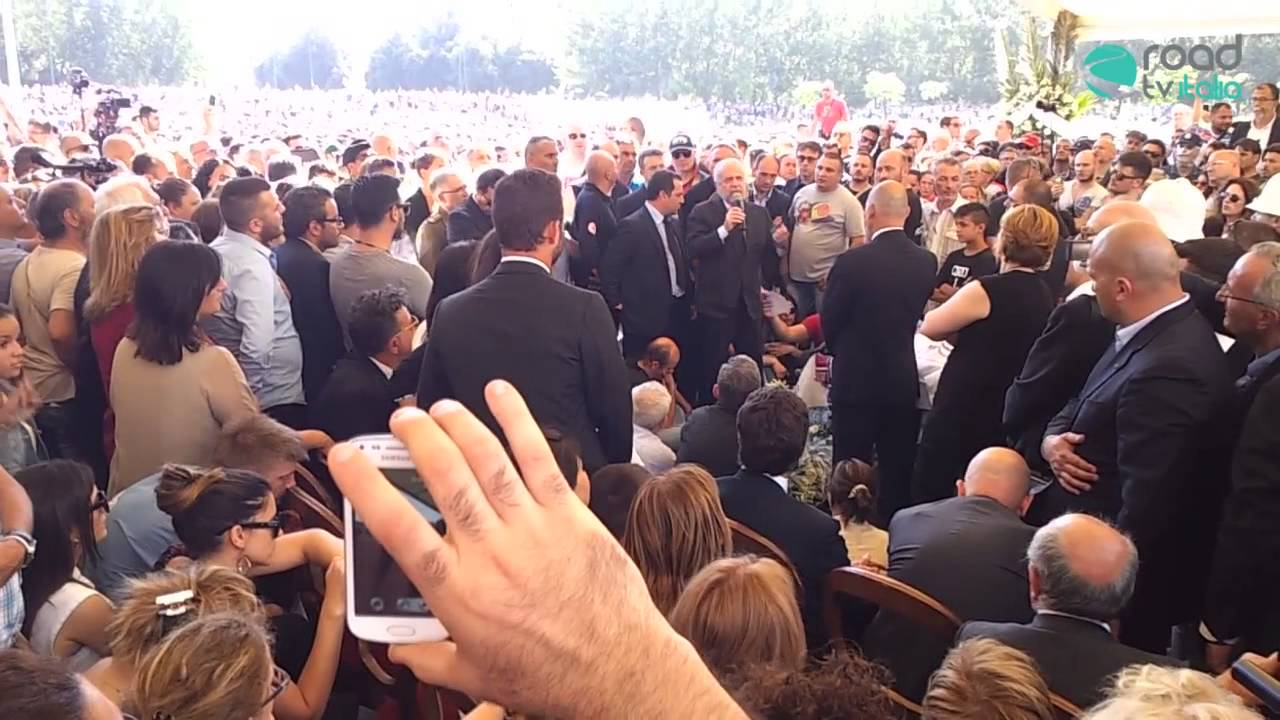 Anche il cantante Nino D’Angelo ha partecipato alla funzione ed è voluto intervenire dicendo che la madre di Ciro gli ha insegnato cos’è la vita per poi intonare l’inno del Napoli “I ragazzi della Curva B” seguito immediatamente da tutta la folla di tifosi presenti.