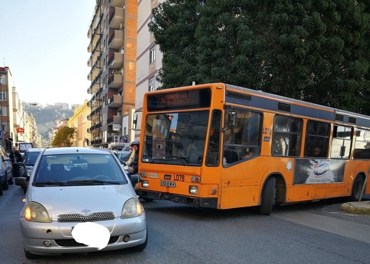Fuorigrotta auto in doppia fila ferma il bus e blocca il traffico di via Leopardi: i cittadini chiedono l’intervento dei vigili.