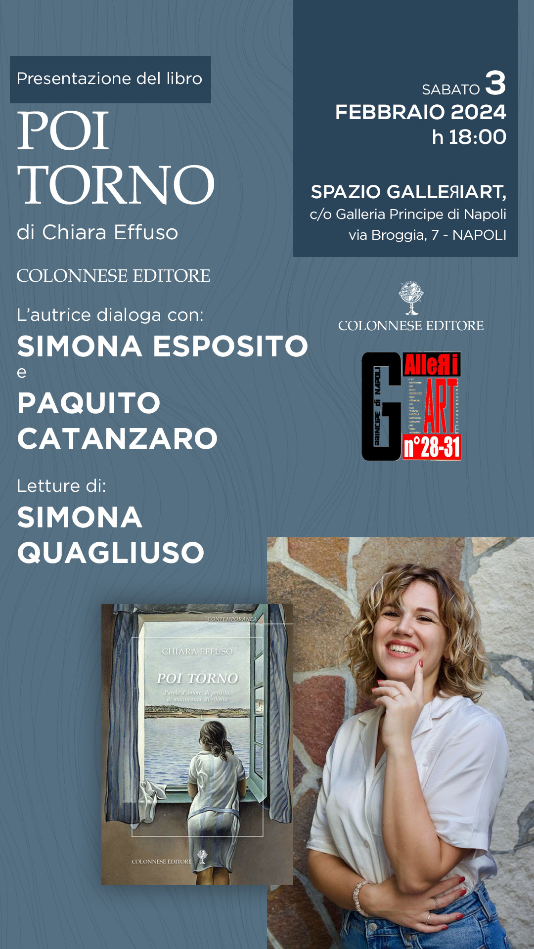 Poi torno di Chiara Effuso, delicata trama di storie d’amore e di malinconia, di perdite e di ritorni, raccolte in volume dalla edizioni Colonnese nella collana di narrativa “Contemporanea”