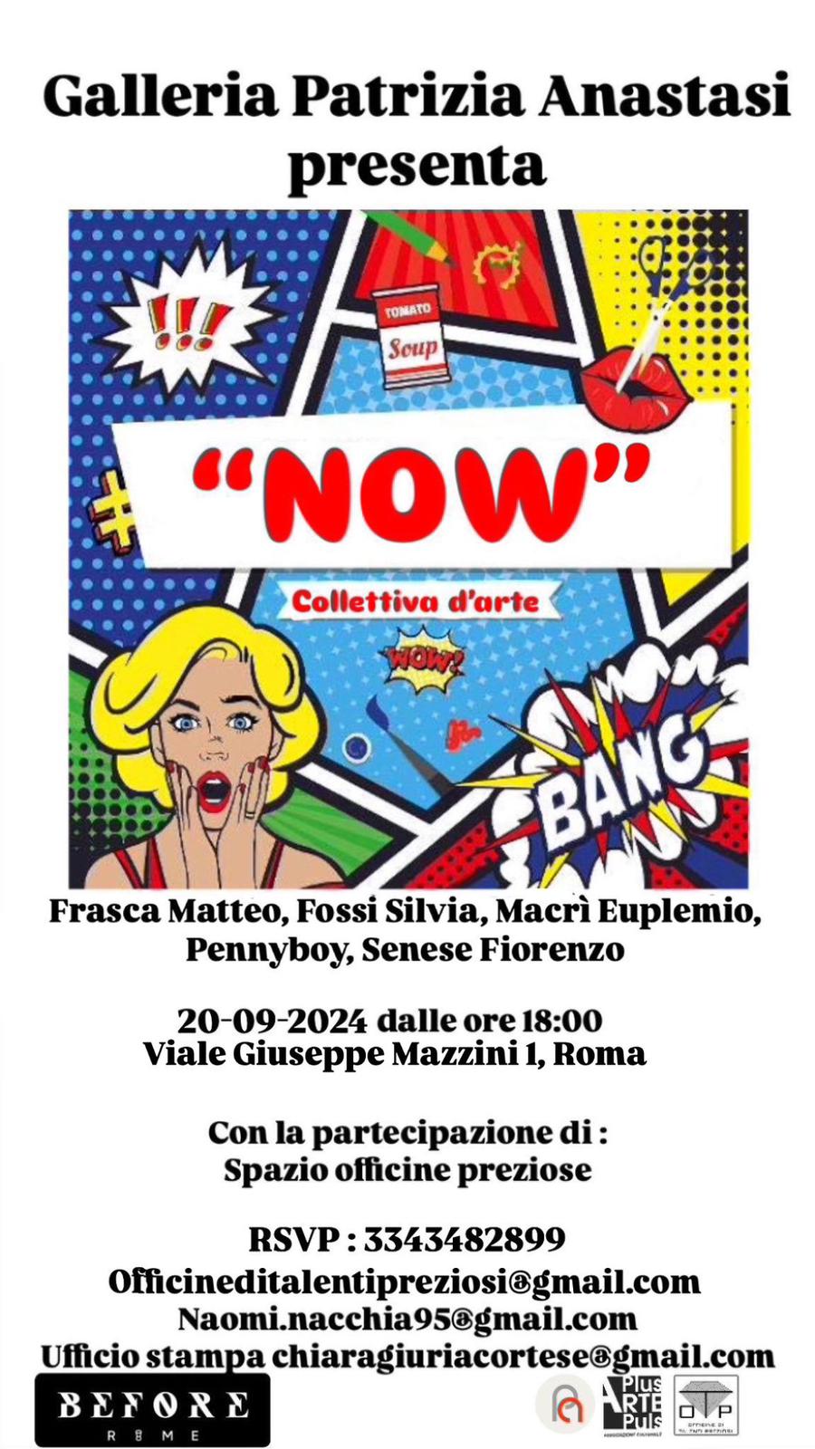 Before, via aurelia 450 before.rome450@gmail.com Ufficio stampa : Chiaragiuriacortese@gmail.com officineditalentipreziosi@gmail.com