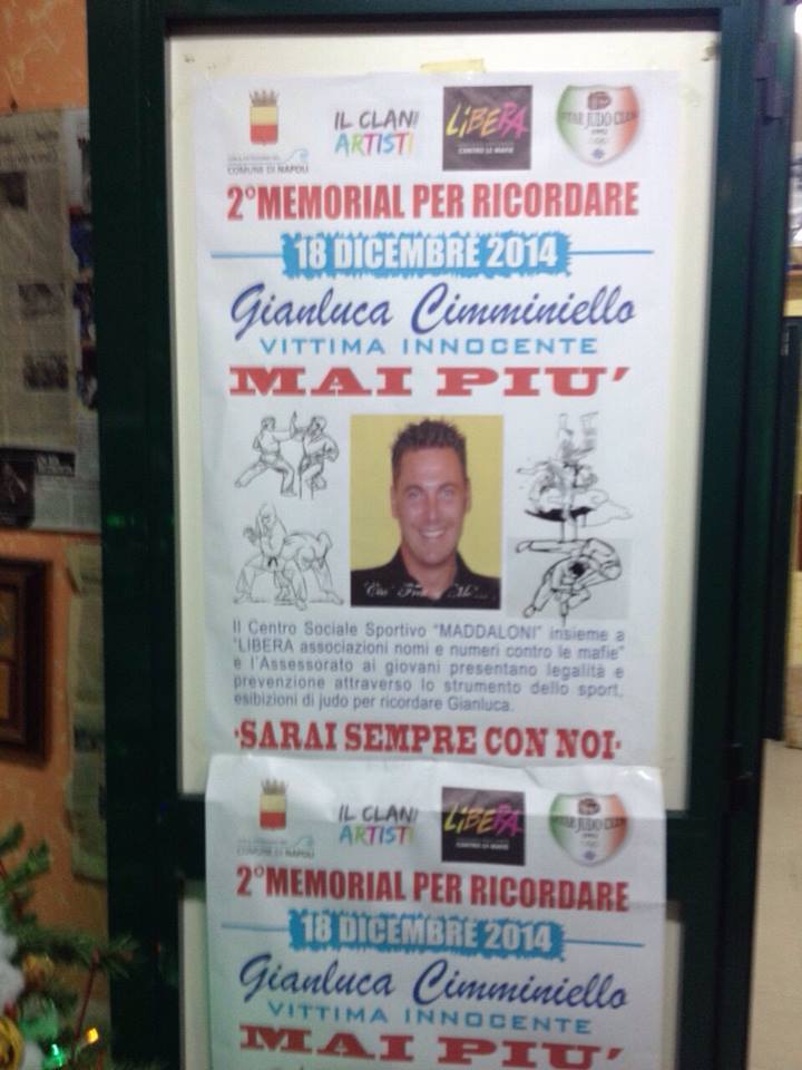 Il 18 dicembre 2014 si è svolto nella Palestra del maestro Maddaloni, il “II Memorial per ricordare Gianluca Cimminiello“, vittima innocente di camorra ucciso barbaramente per una semplice foto postata su Facebook che scatenò l’ira e l’invidia di un’altro tatuatore. La famiglia di Gianluca Cimminiello, con portavoce sua sorella Susy, che in sinergia con il maestro Gianni Maddaloni ha fatto sì che nel Centro Sociale Sportivo Maddaloni, a Scampia, unitamente a Libera, associazioni nomi e numeri contro le mafie e all’Assessorato ai giovani, si sia organizzata una serata di esibizioni di Judo per ricordare Gianluca e soprattutto per far capire ai più piccoli, quanto possa essere importante praticare sport osservando le regole e la disciplina.
